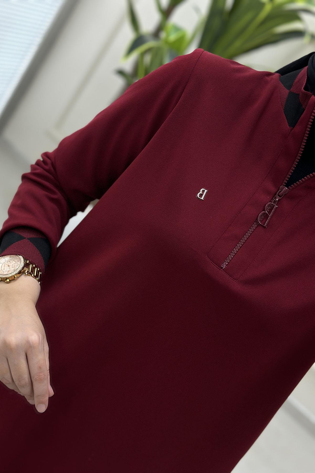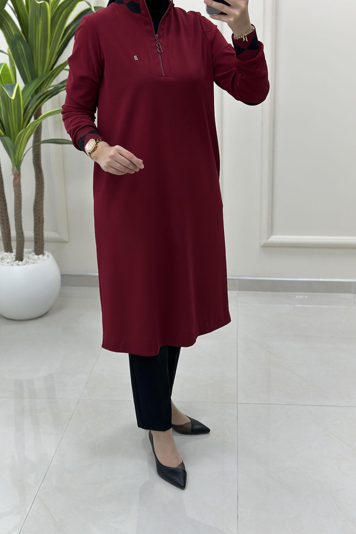 Belli Yaka Ve Kol Ribana Detaylı Kadın Tunik Bordo BELLİ 4008 (BELLİ-26K4008)