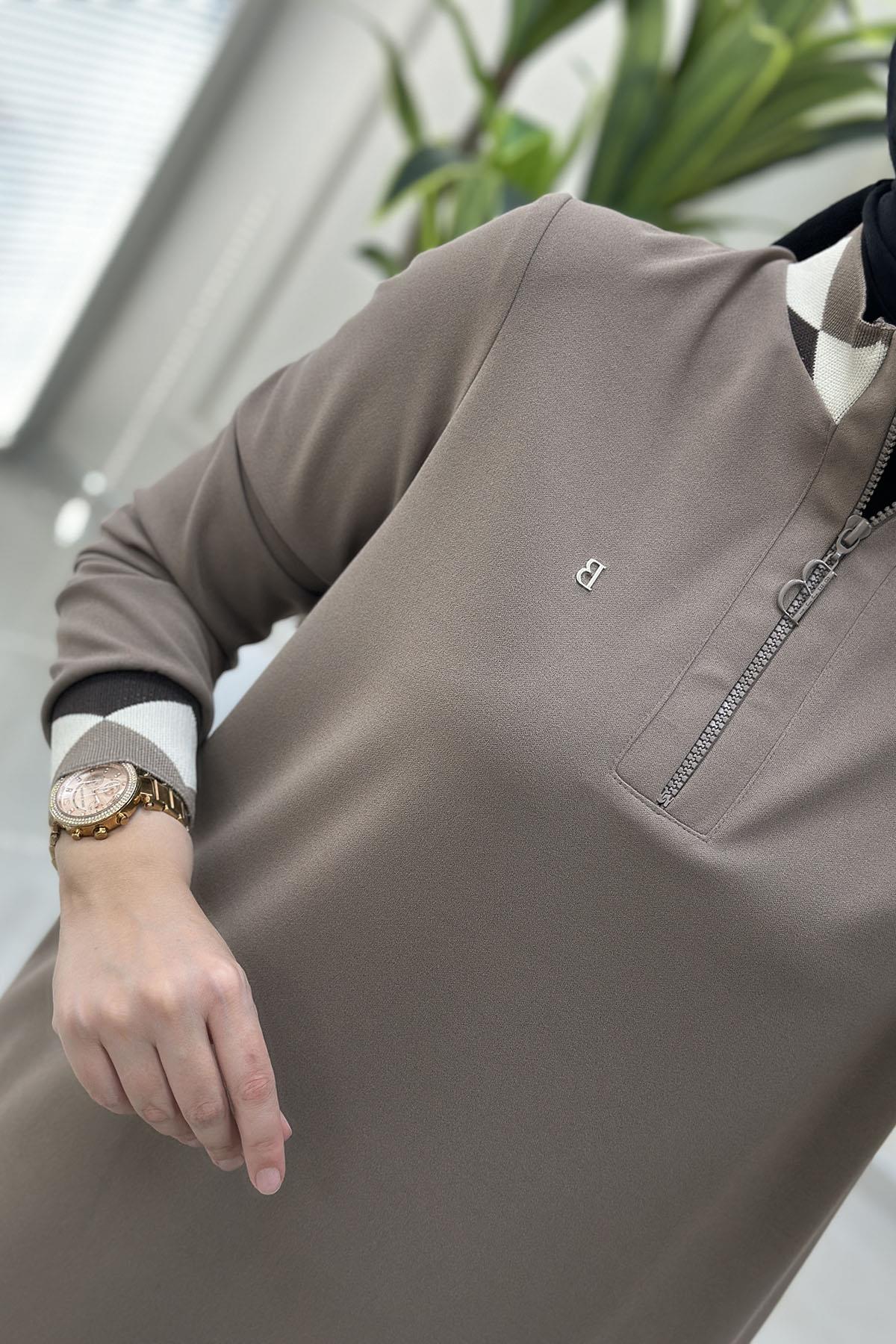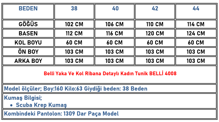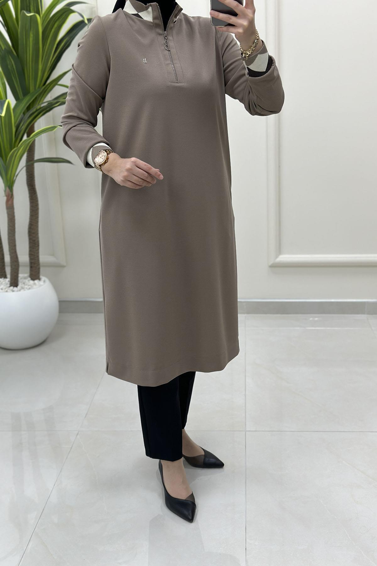 Belli Yaka Ve Kol Ribana Detaylı Kadın Tunik Vizon BELLİ 4008 (BELLİ-26K4008)