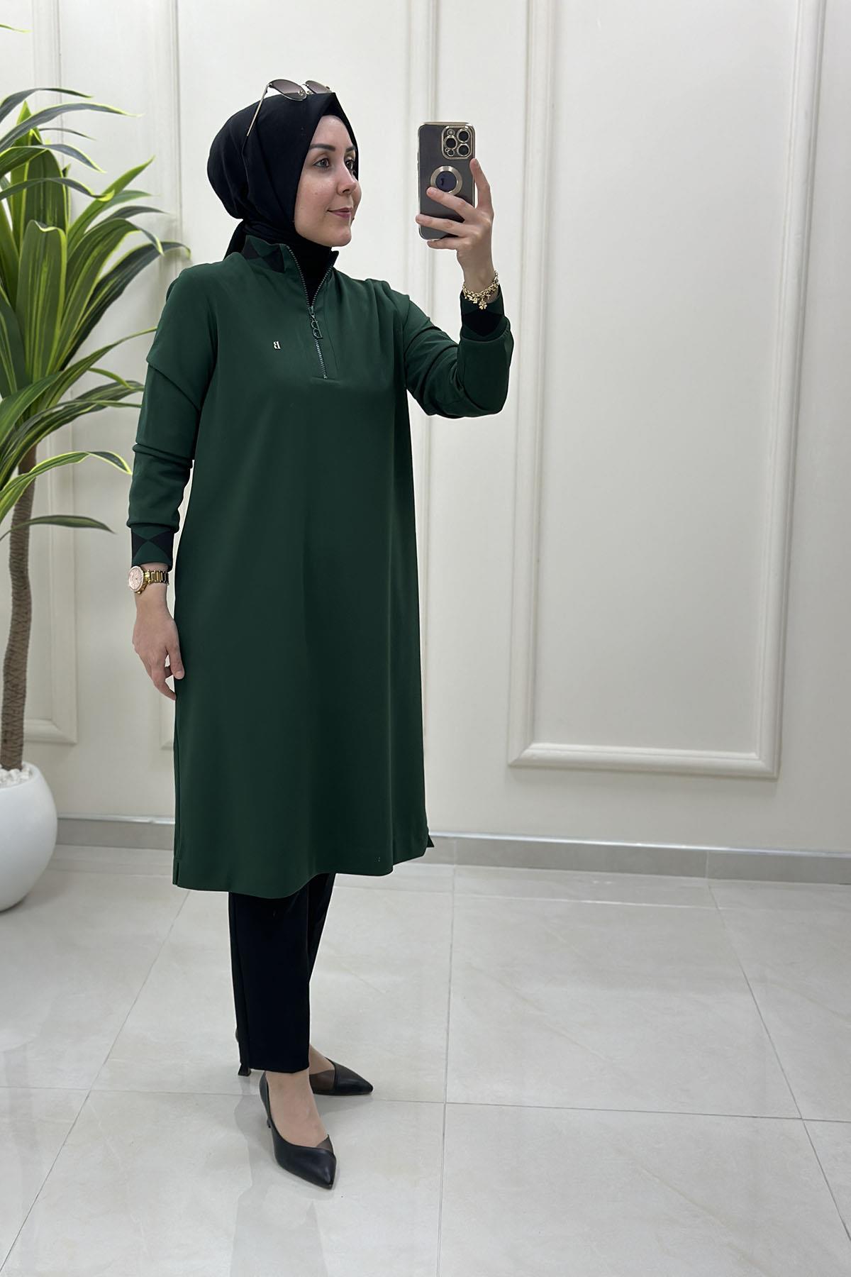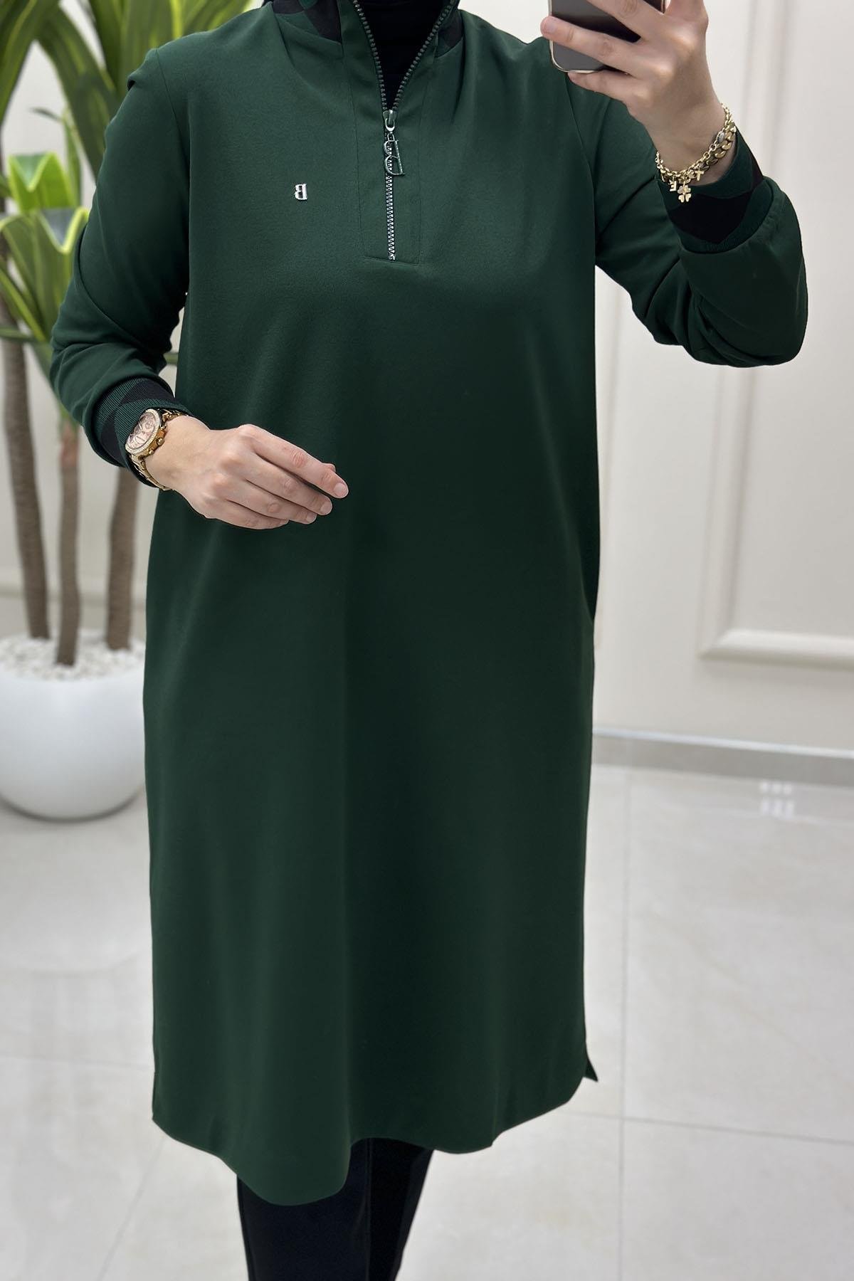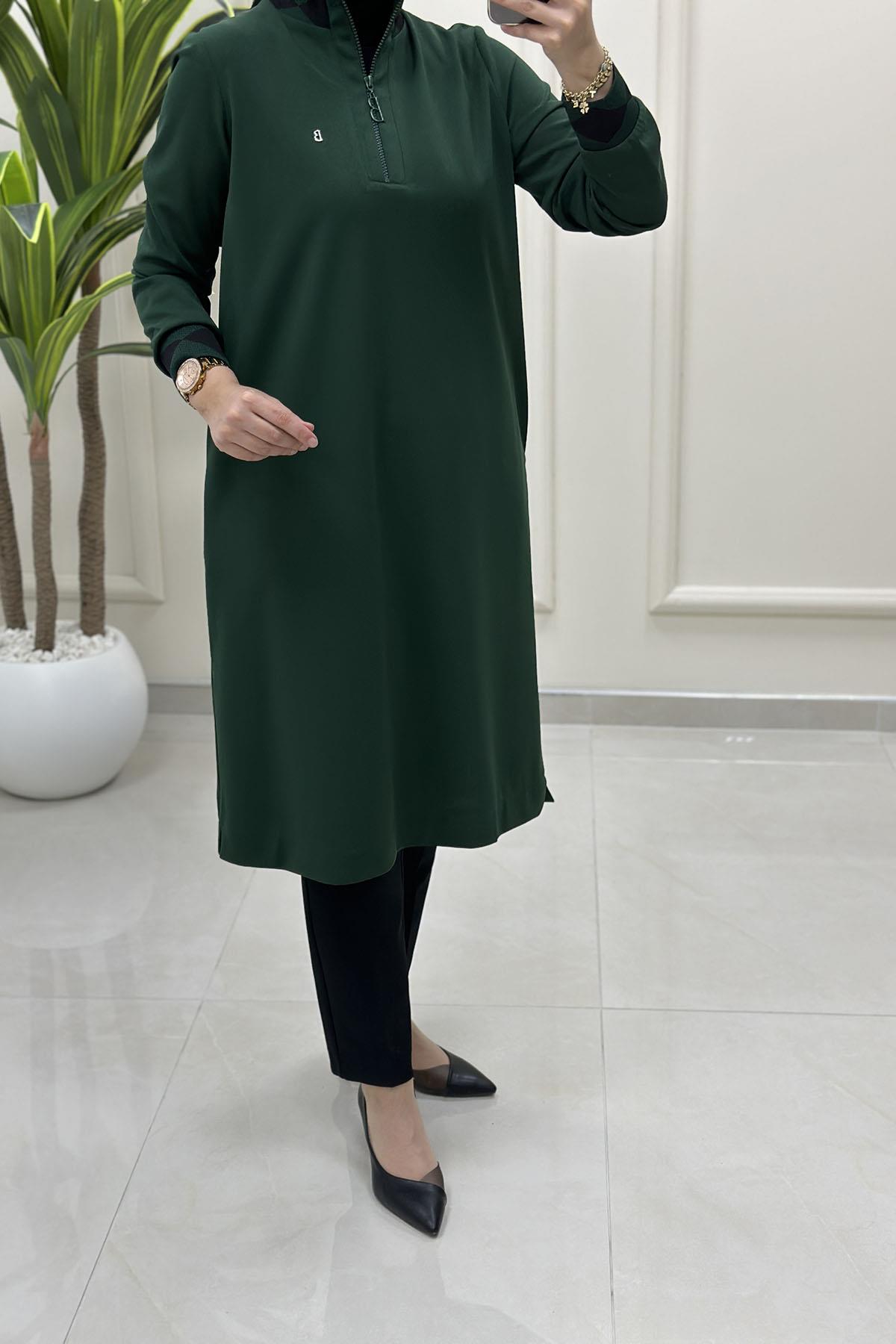 Belli Yaka Ve Kol Ribana Detaylı Kadın Tunik Yeşil BELLİ 4008 (BELLİ-26K4008)