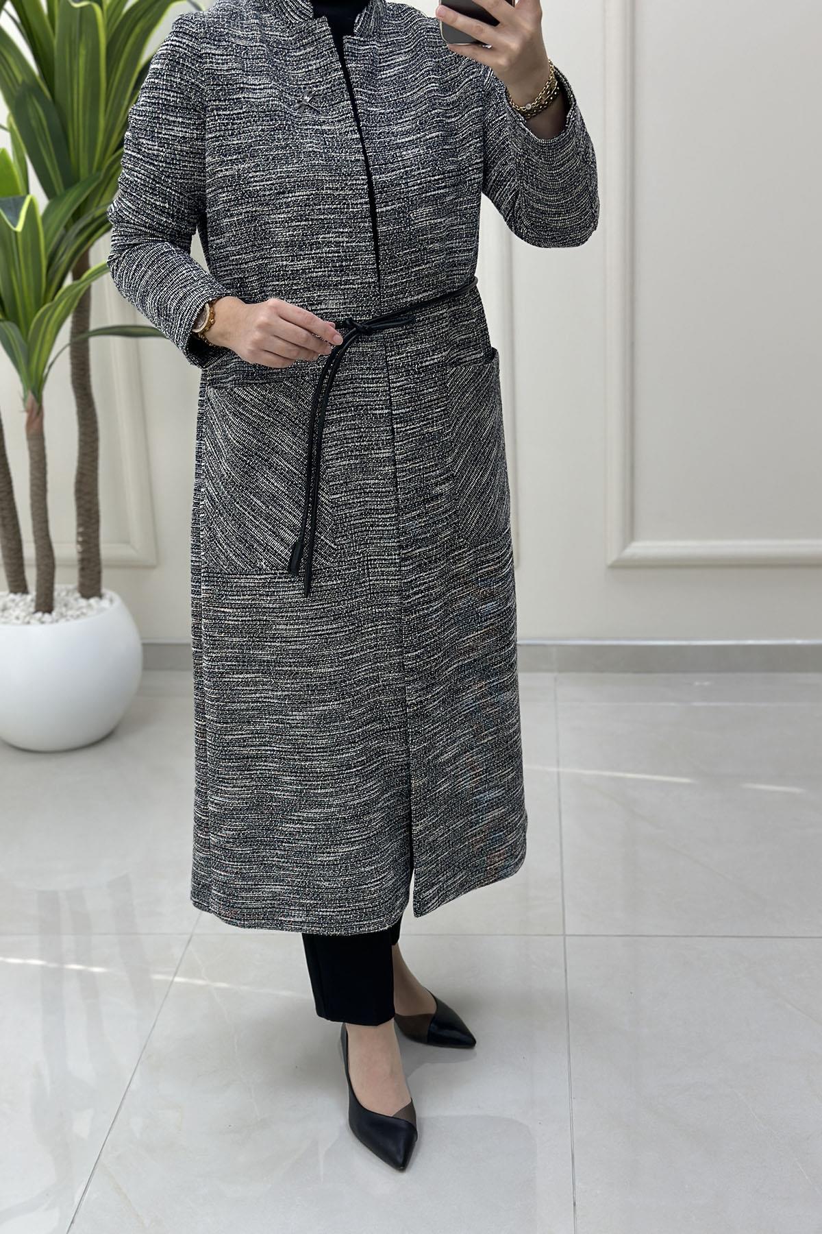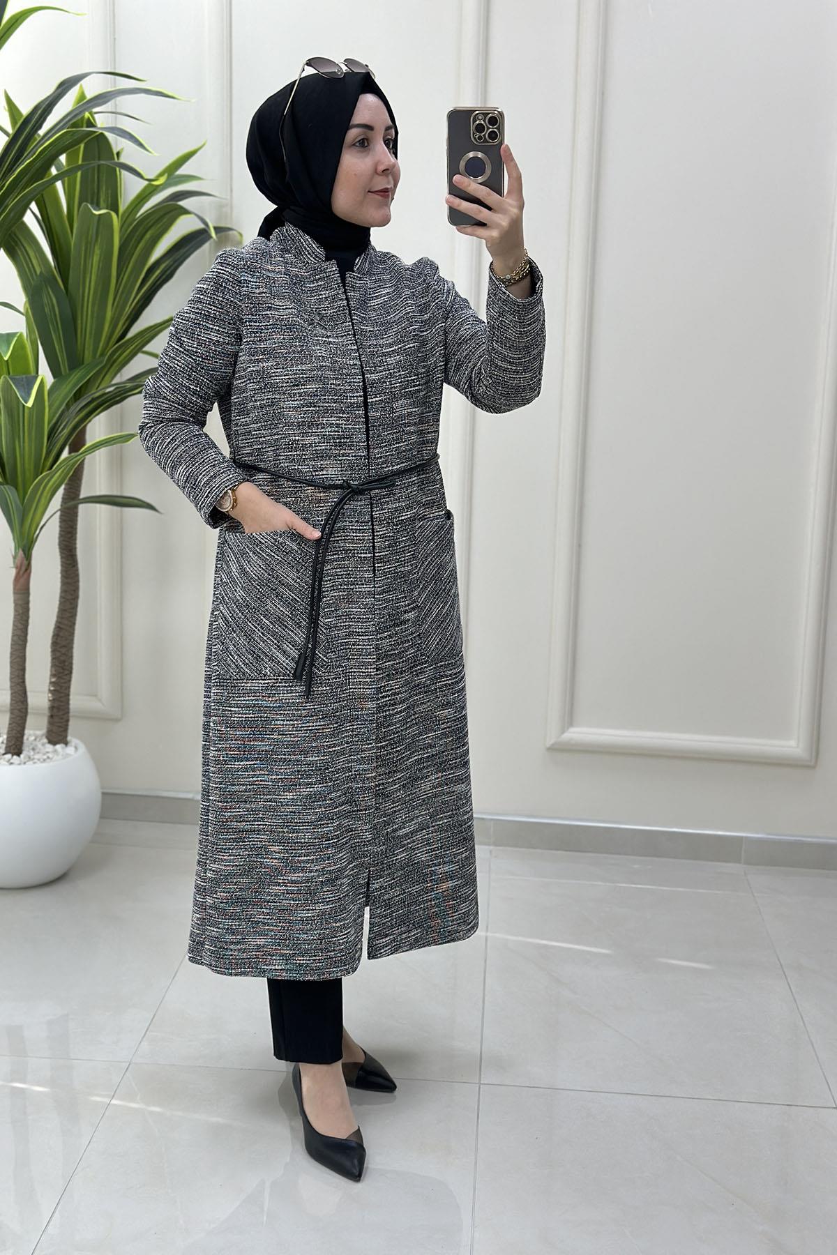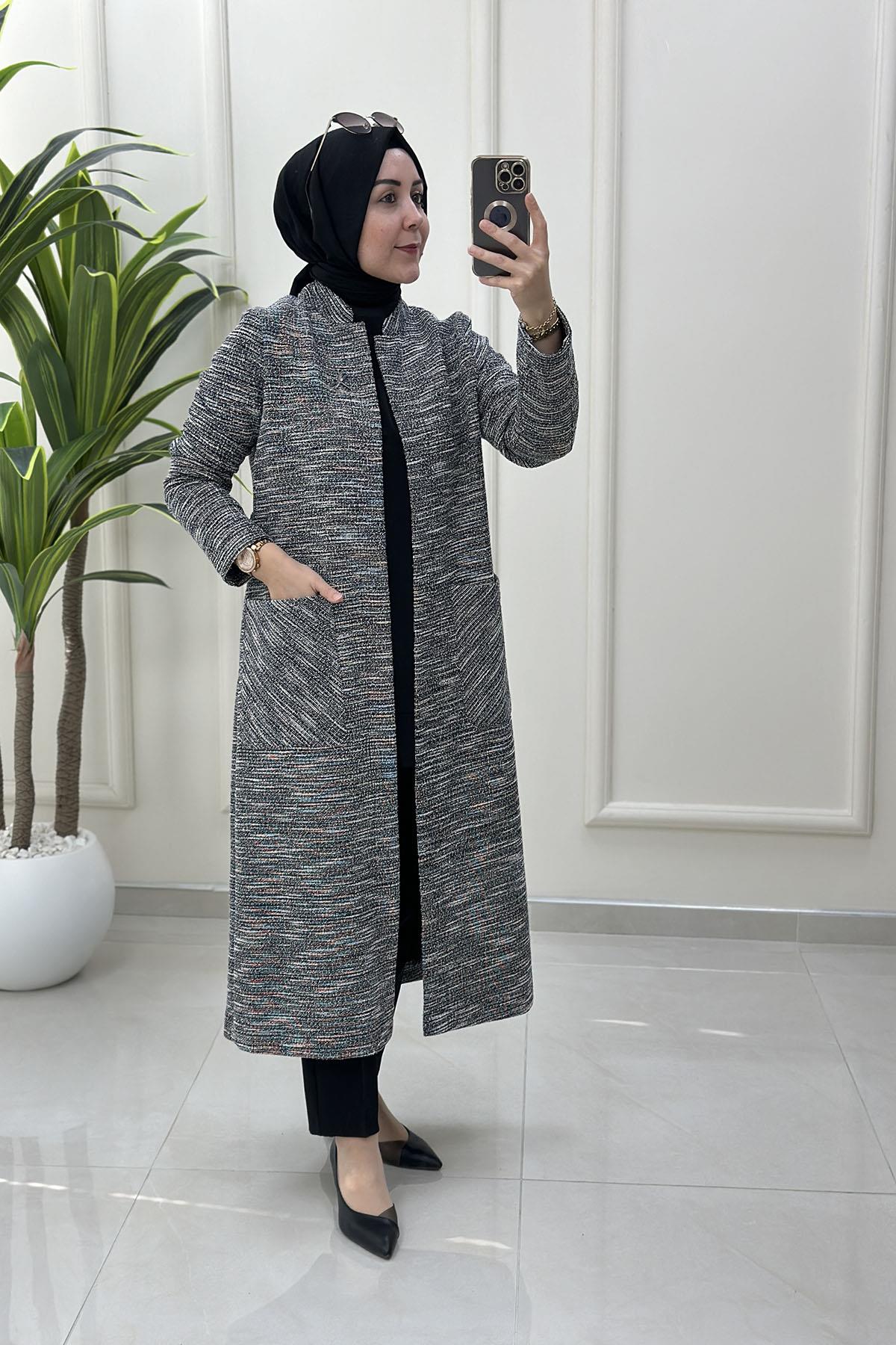 Armine Trend Broş Detaylı Cepli Kadın Tüvit Hırka Siyah ARM 5005 (ARM-26K5005)