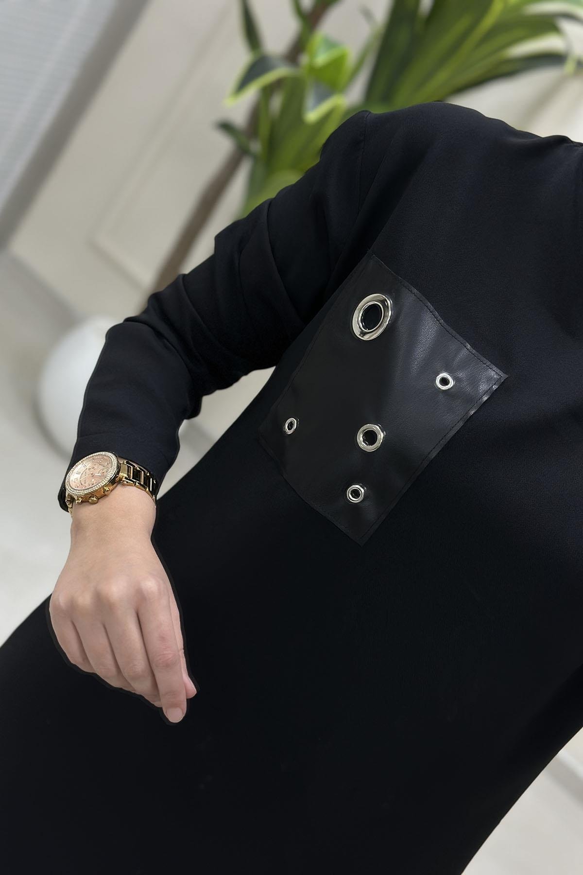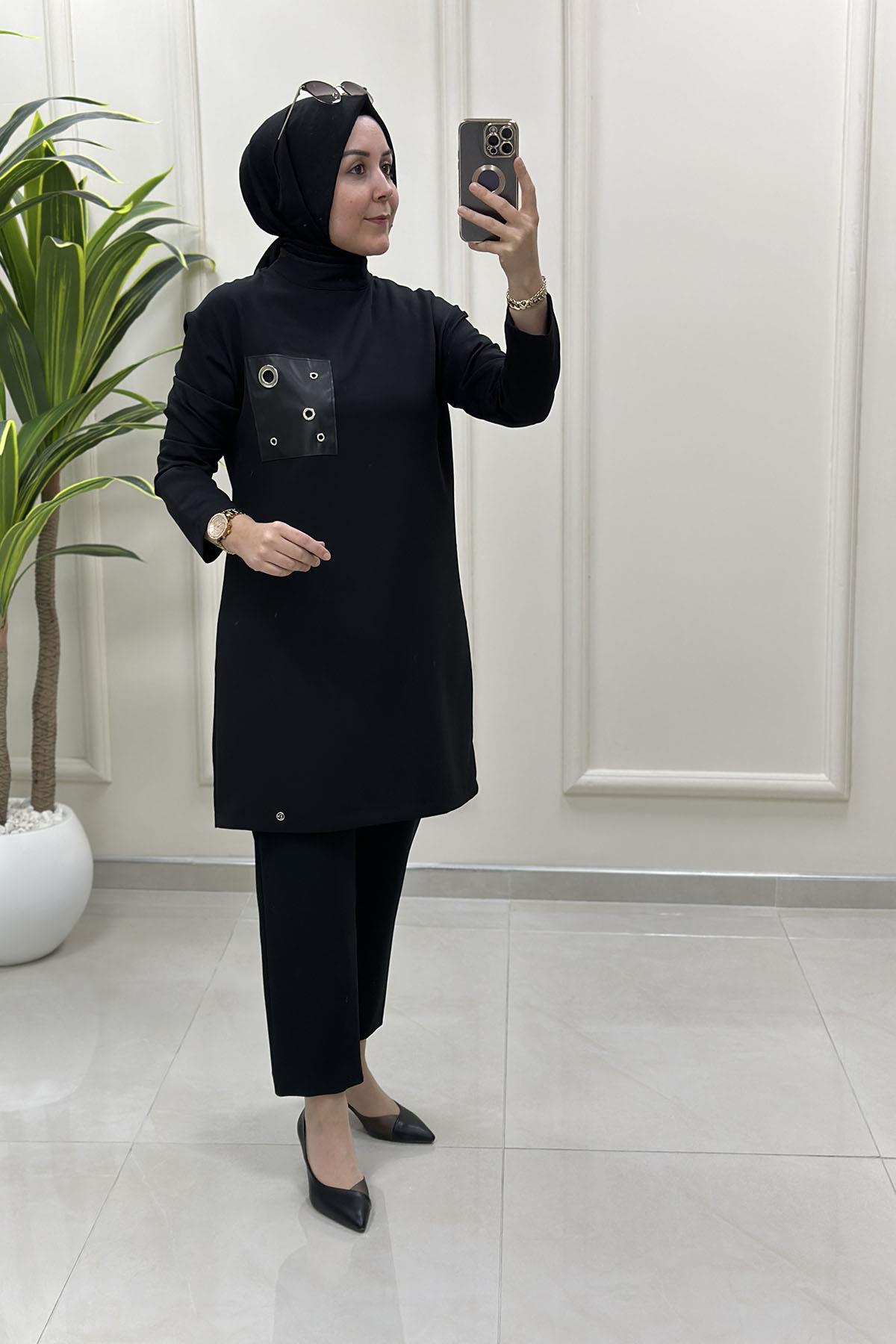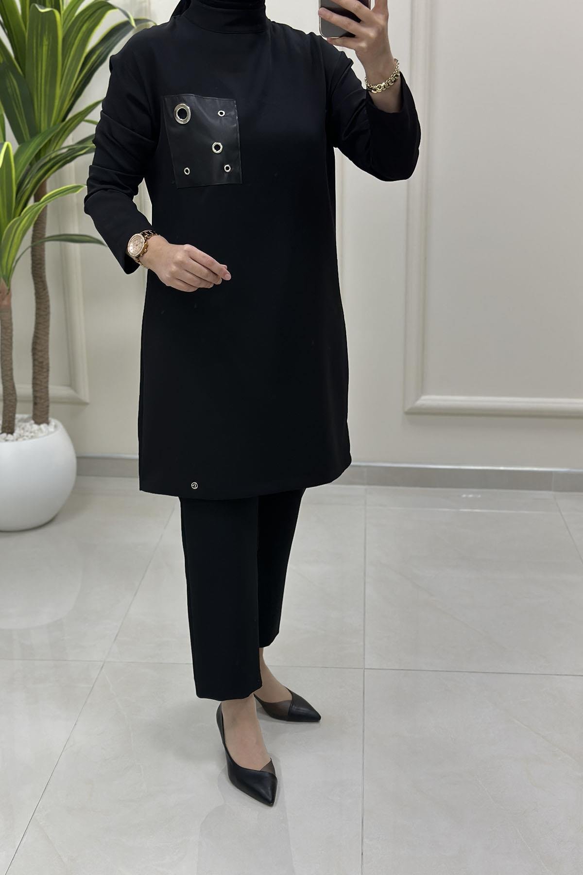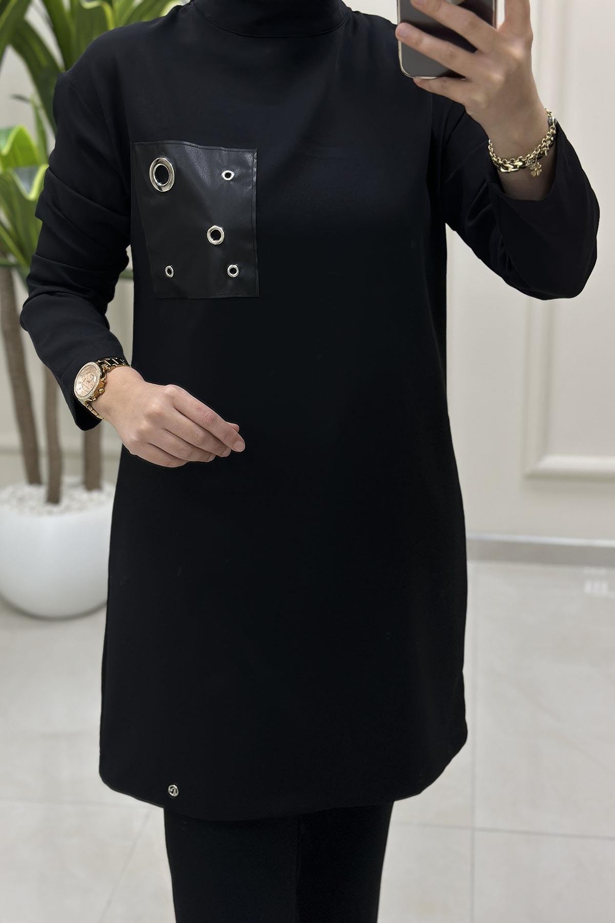 Armine Trend Düşük Omuz Deri Kombinli Kadın Tunik Siyah ARM 438 (ARM-26K438 )