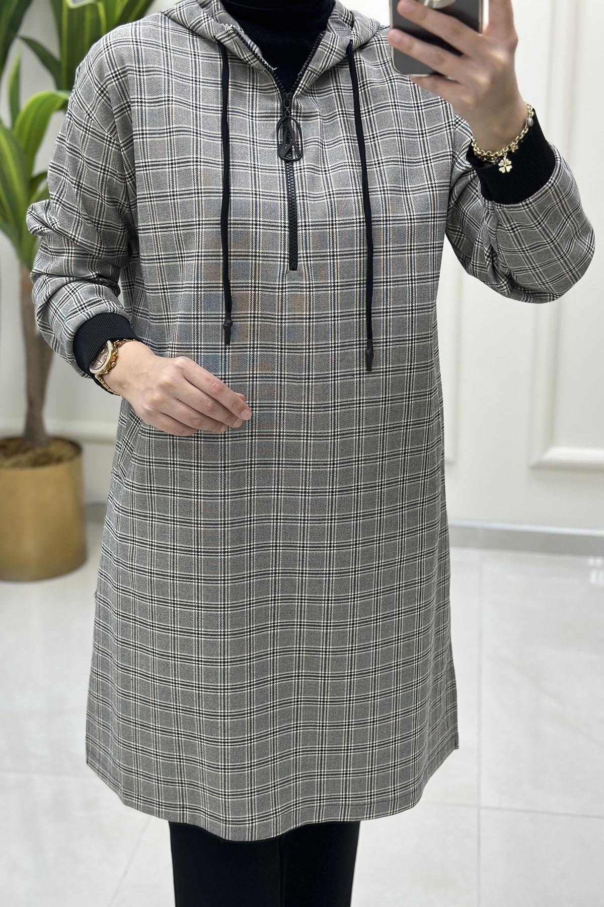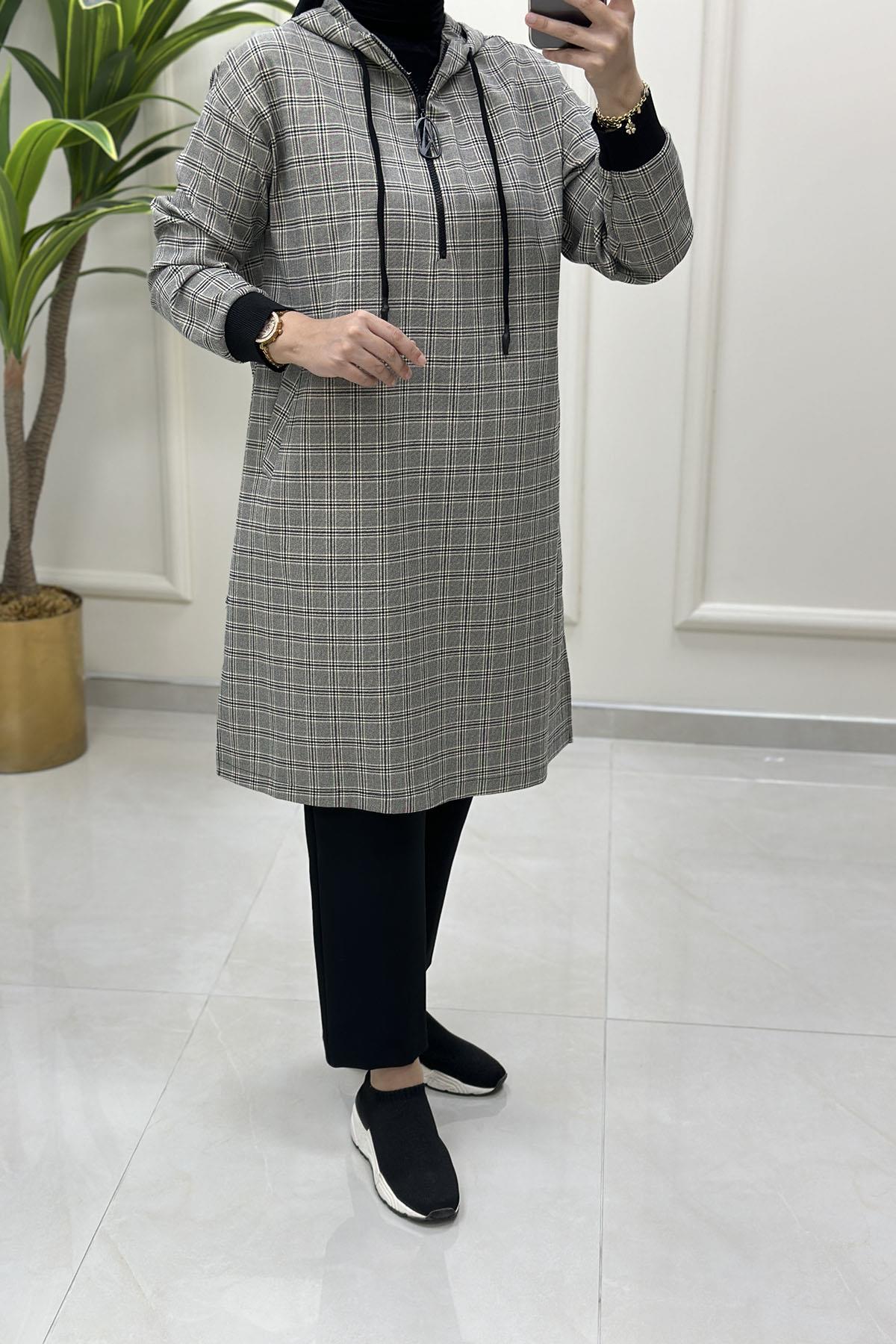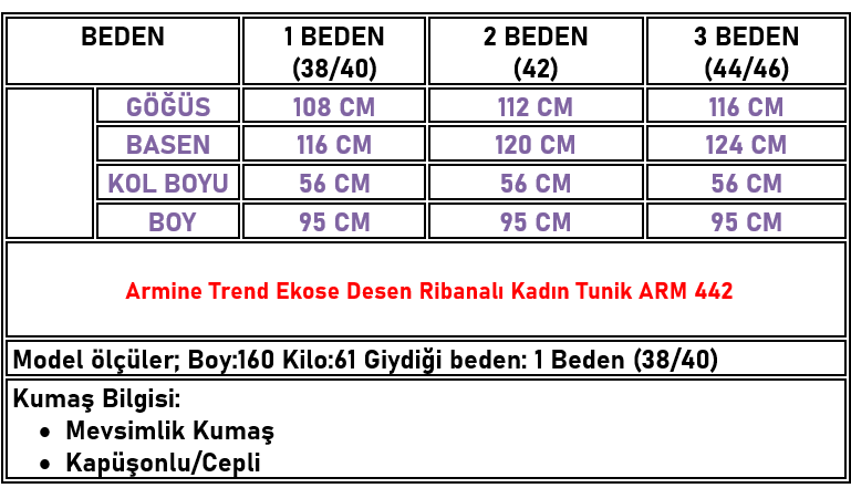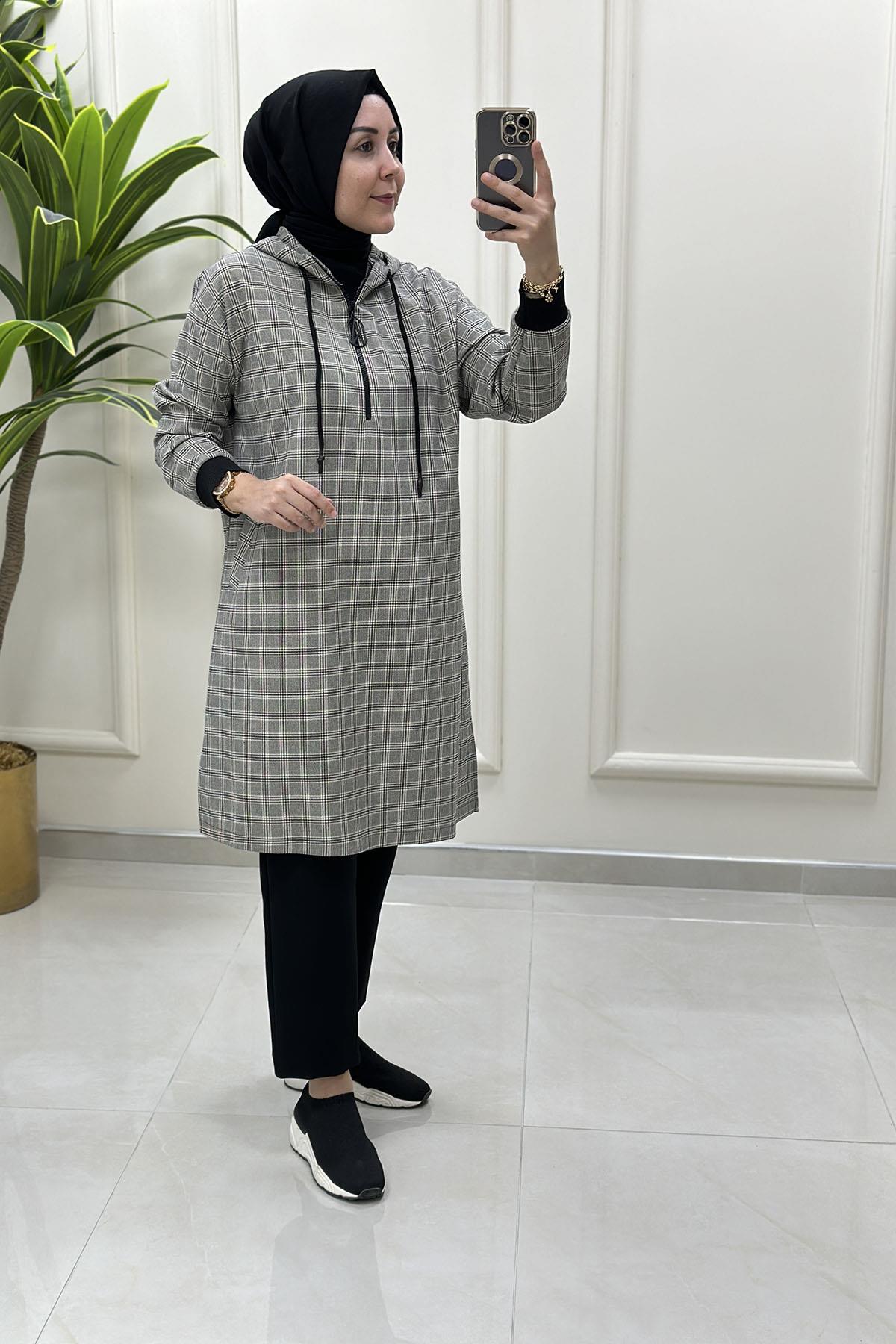 Armine Trend Ekose Desen Ribanalı Kadın Tunik Siyah ARM 442 (ARM-26K442)