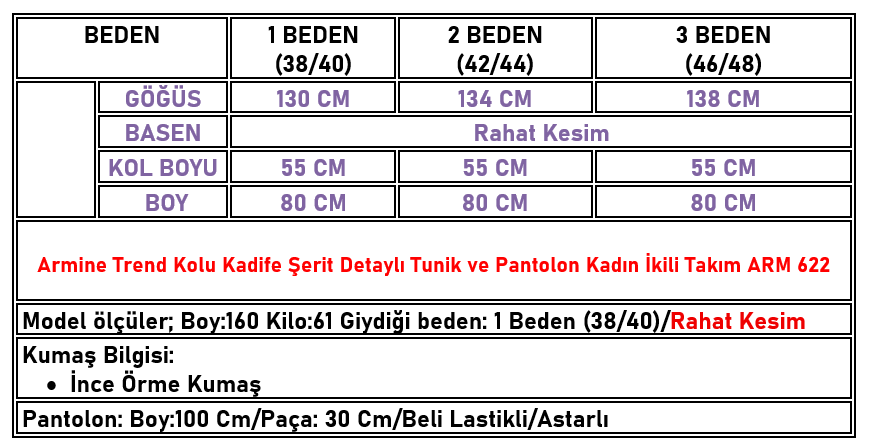 Armine Trend Kolu Kadife Şerit Detaylı Tunik ve Pantolon Kadın İkili Takım Vizon ARM 622 (ARM-26K622)