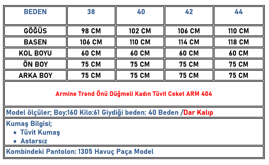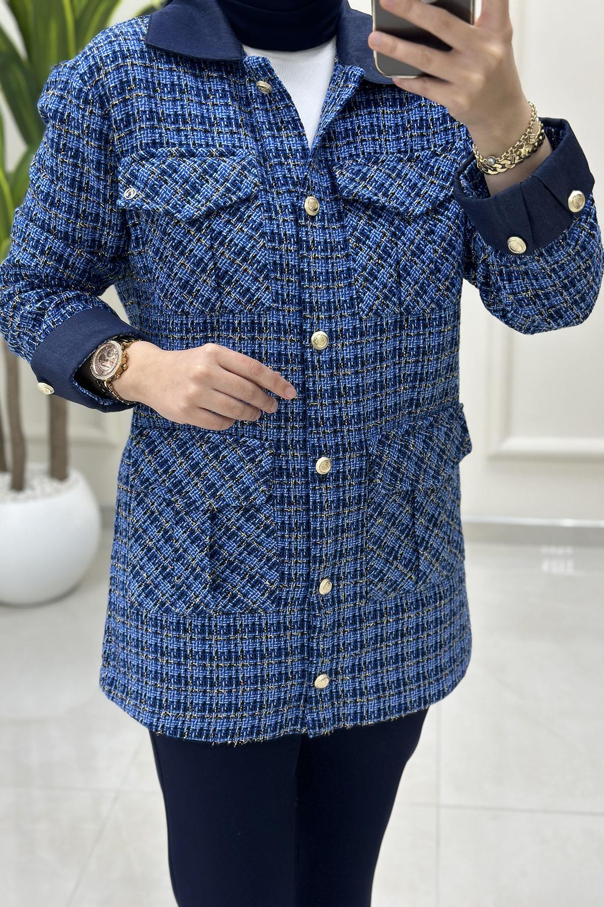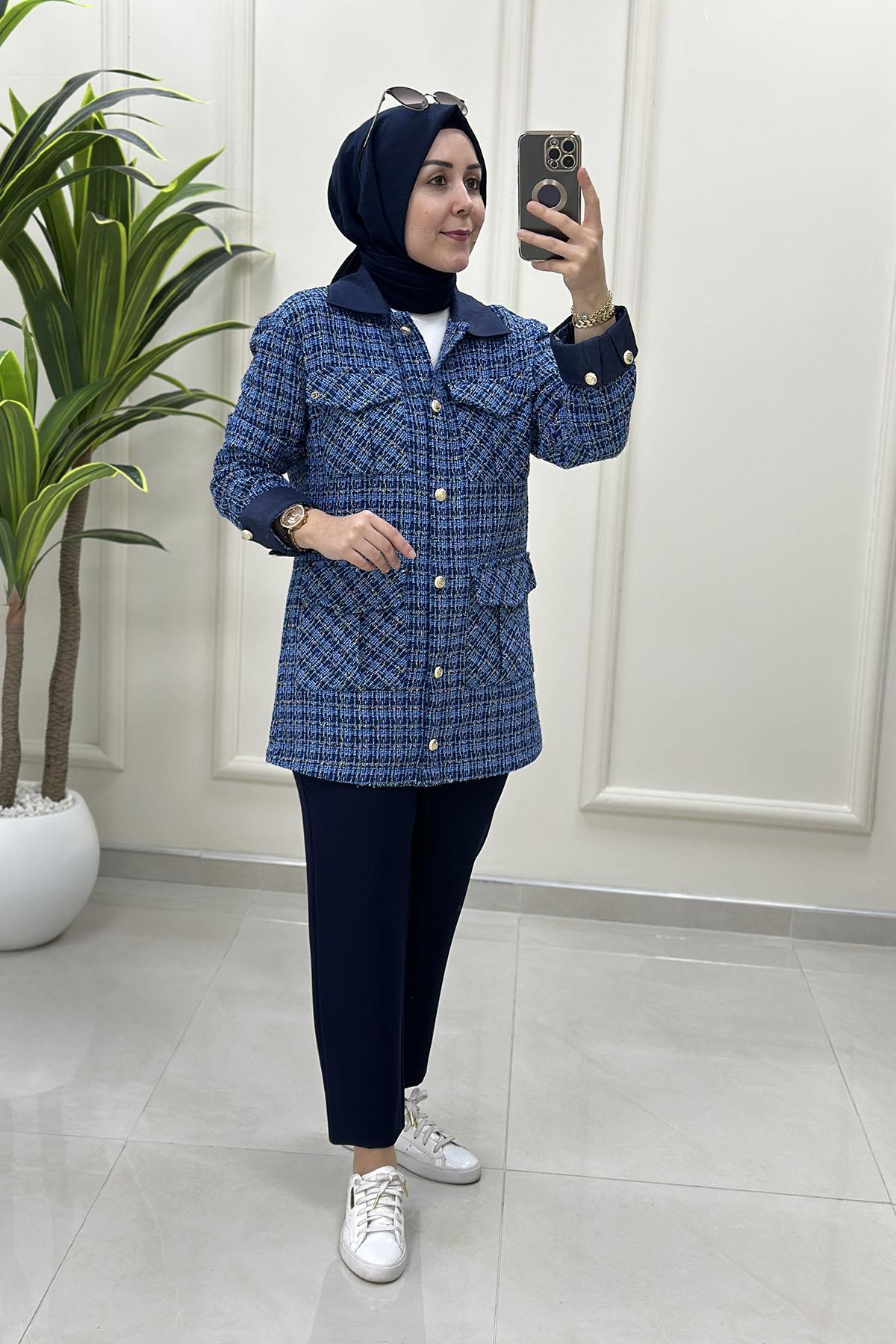 Armine Trend Önü Düğmeli Kadın Tüvit Ceket İndigo ARM 404 (ARM-26K404)