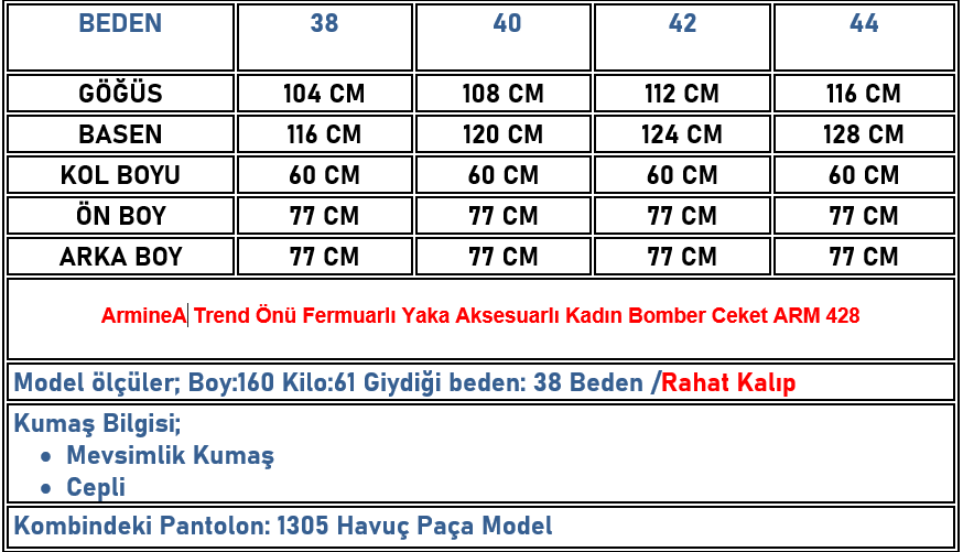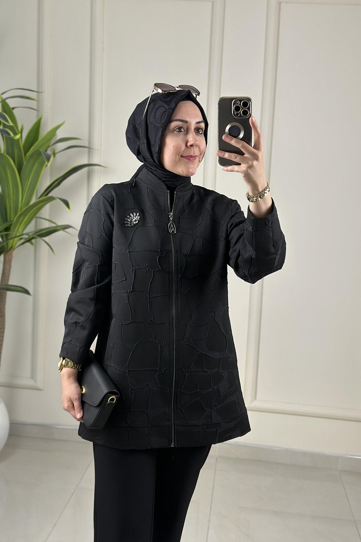 Armine Trend Önü Fermuarlı Yaka Aksesuarlı Kadın Bomber Ceket Siyah ARM 428 (ARM-26K428)