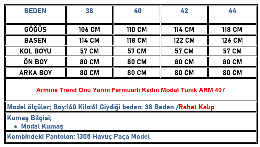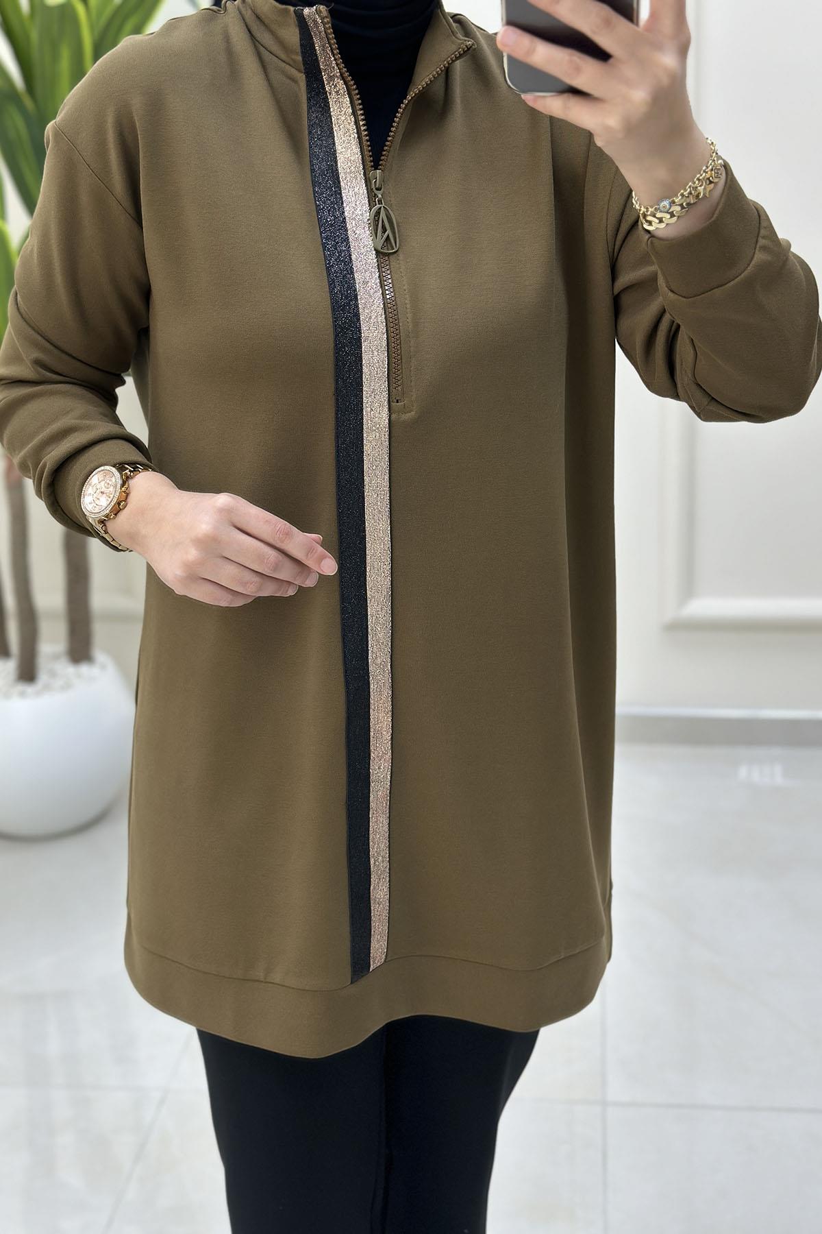 Armine Trend Önü Yarım Fermuarlı Kadın Modal Tunik Yağ Yeşili ARM 407 (ARM-26K407)