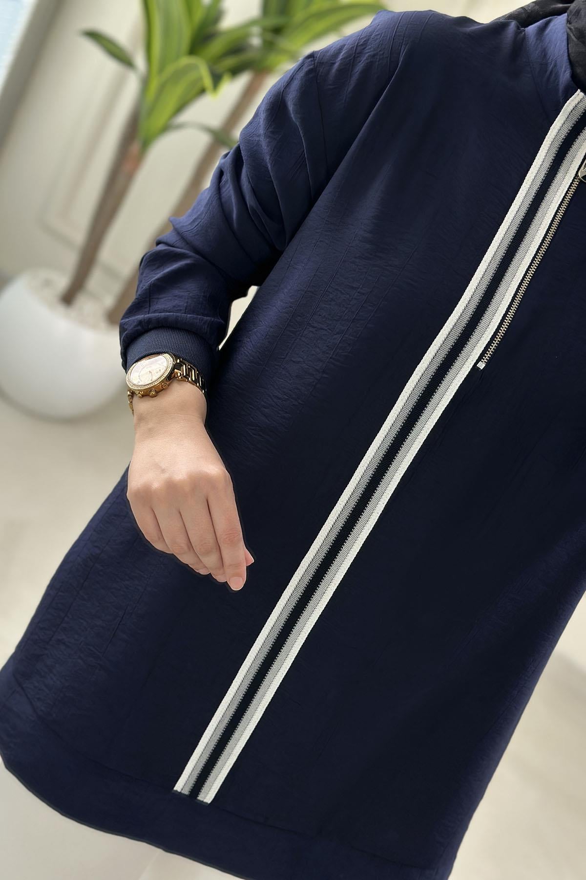 Armine Trend Önü Yarım Fermuarlı Ribana Detaylı Kadın Tunik Lacivert ARM 465