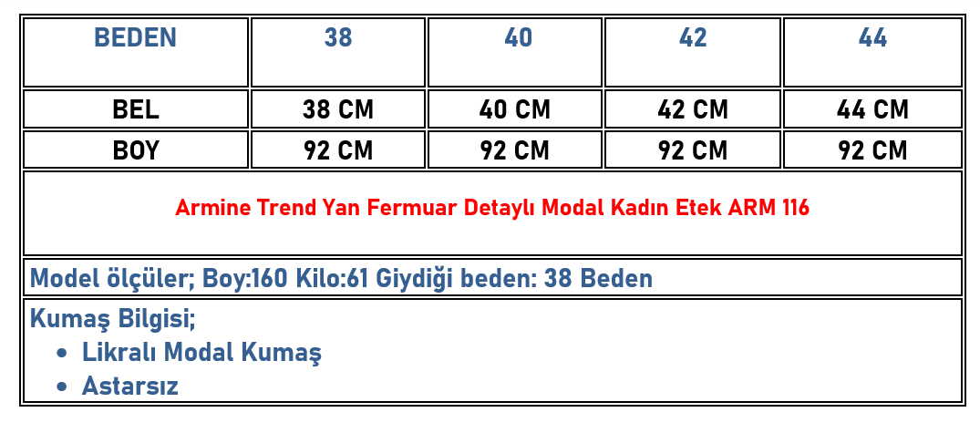 Armine Trend Yan Fermuar Detaylı Modal Kadın Etek Siyah ARM 116 (ARM-26K116)