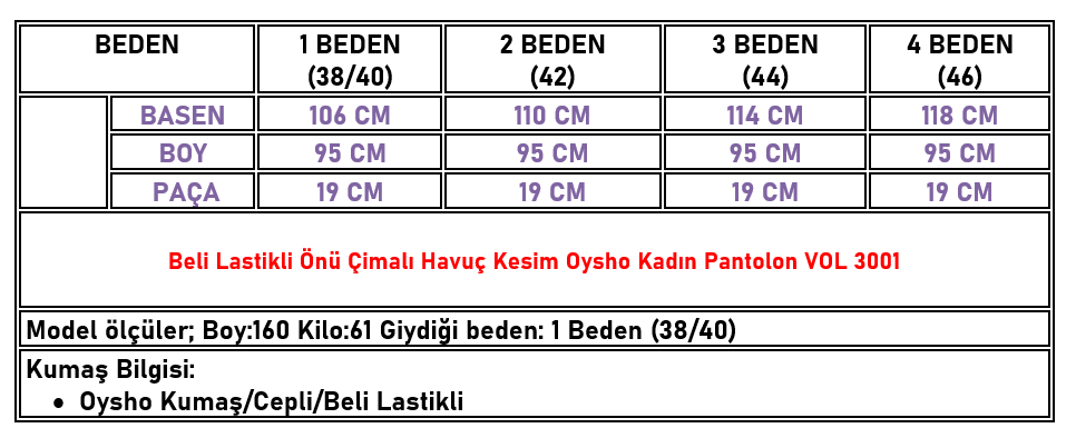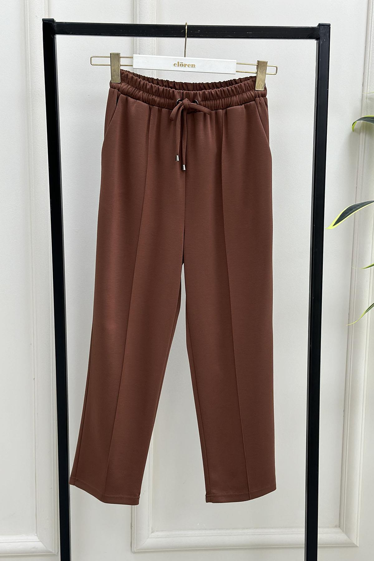 Beli Lastikli Önü Çimalı Havuç Kesim Oysho Kadın Pantolon Taba VOL 3001 (VOL-26K3001)