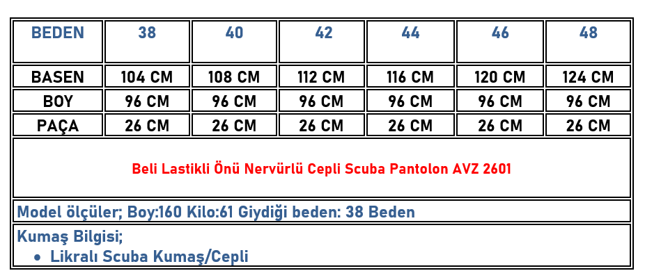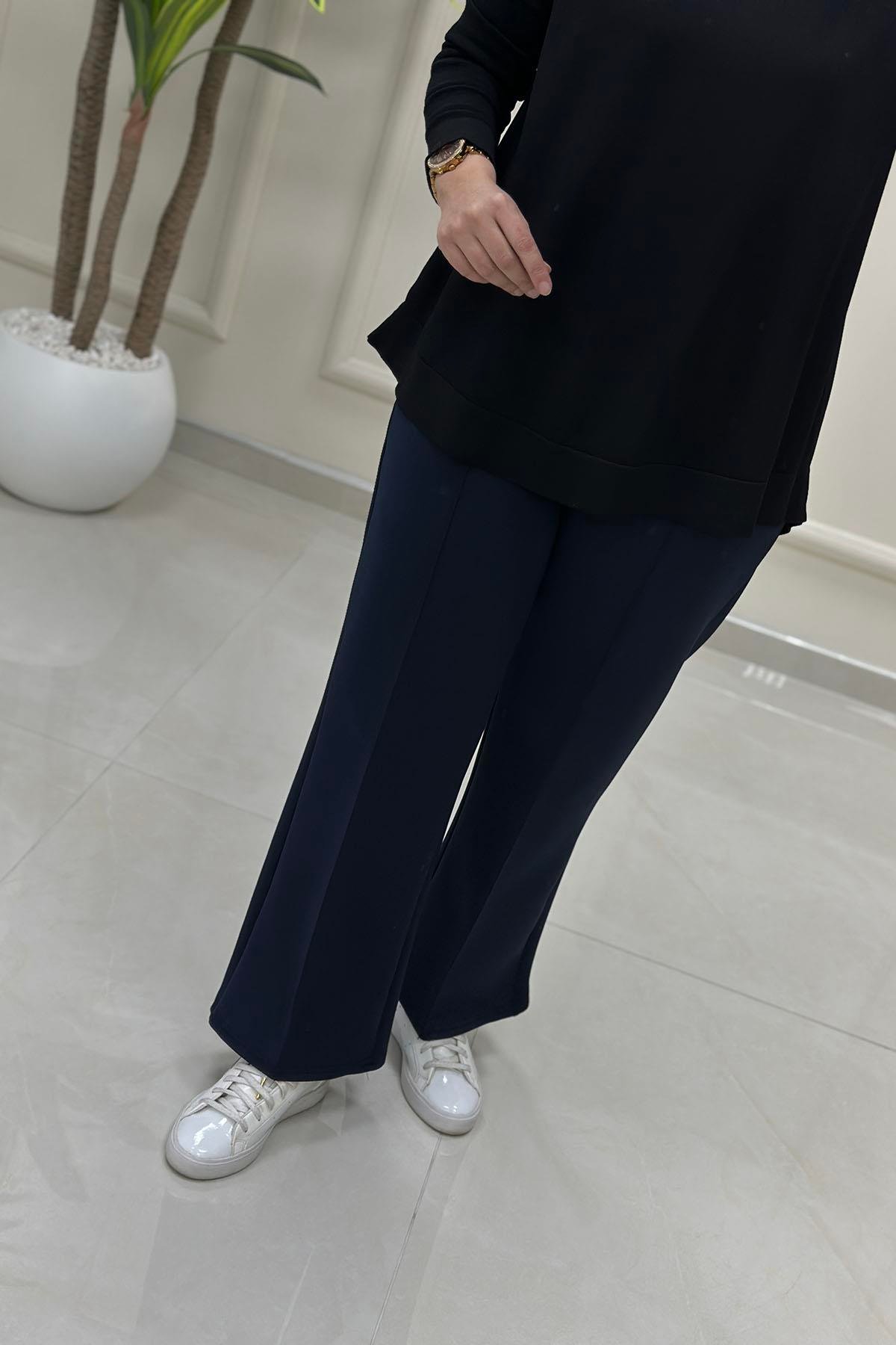 Beli Lastikli Önü Nervürlü Cepli Scuba Pantolon Lacivert AVZ 2601 (AVZ-26K2601)