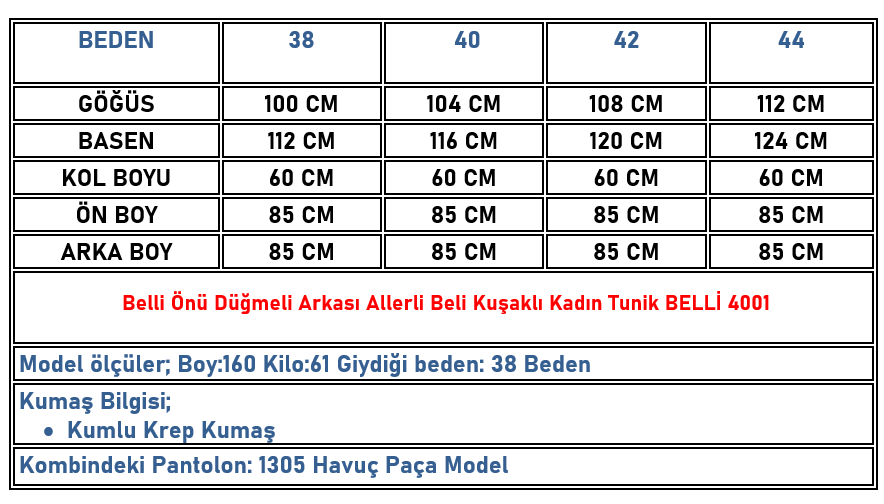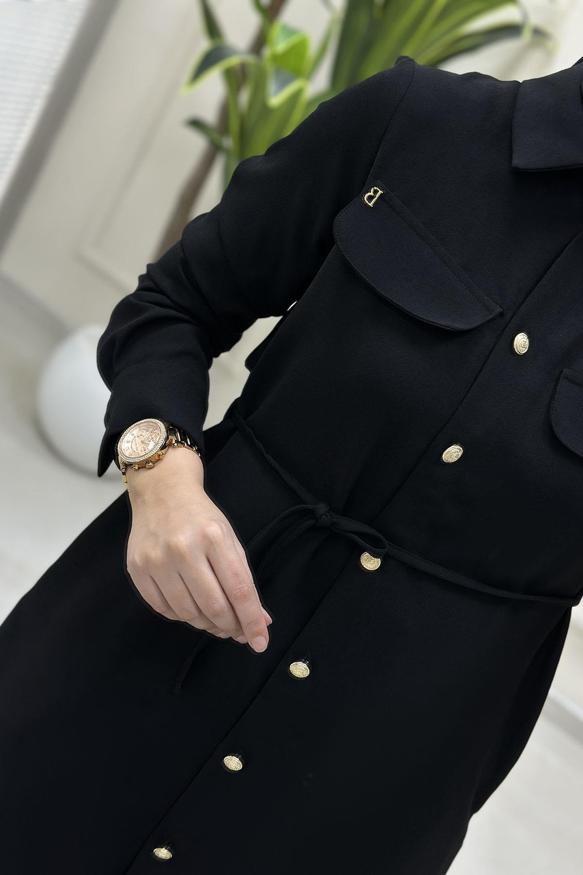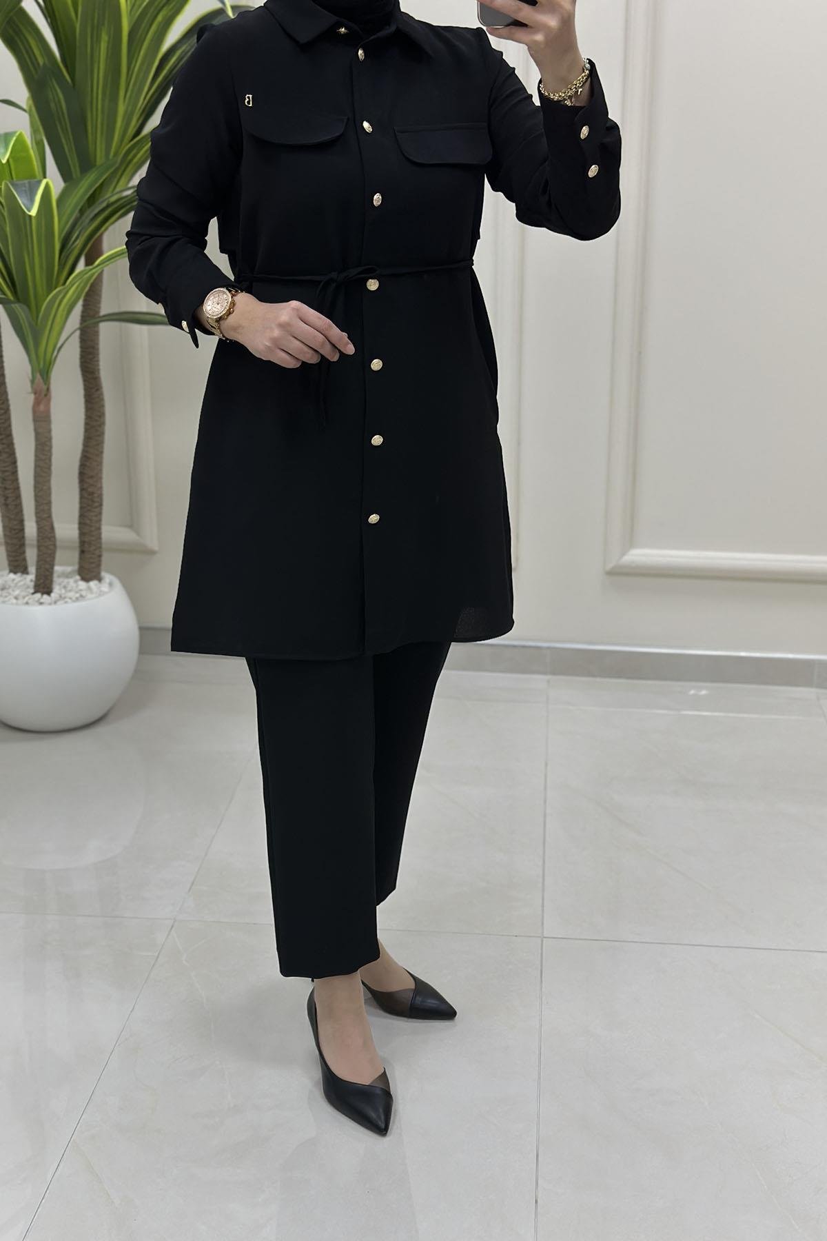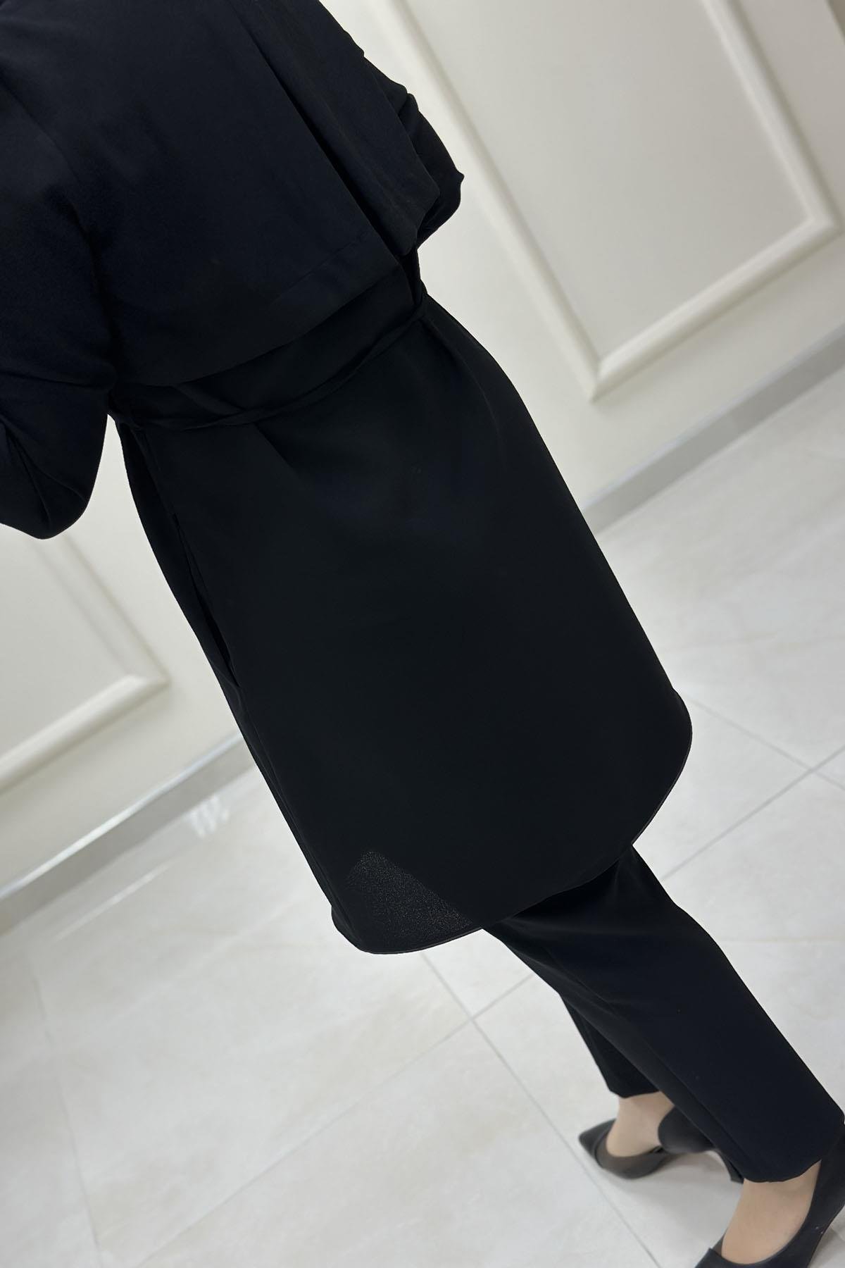 Belli Önü Düğmeli Arkası Allerli Beli Kuşaklı Kadın Tunik Siyah BELLİ 4001 (BELLİ-26K4001)