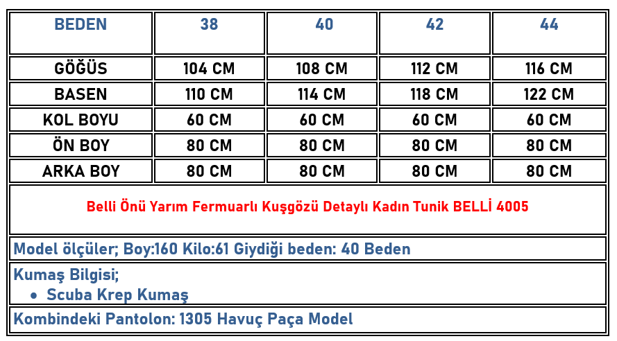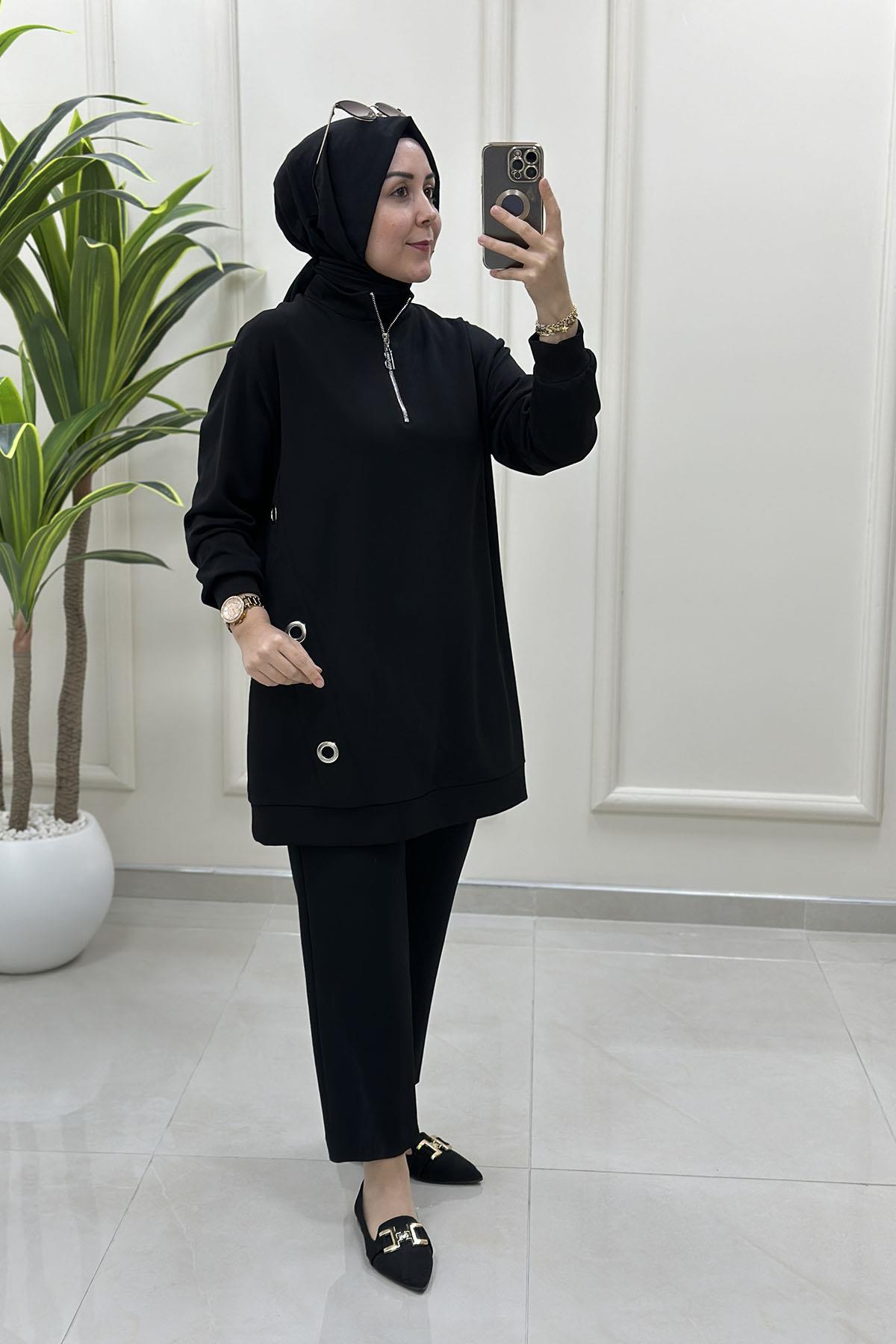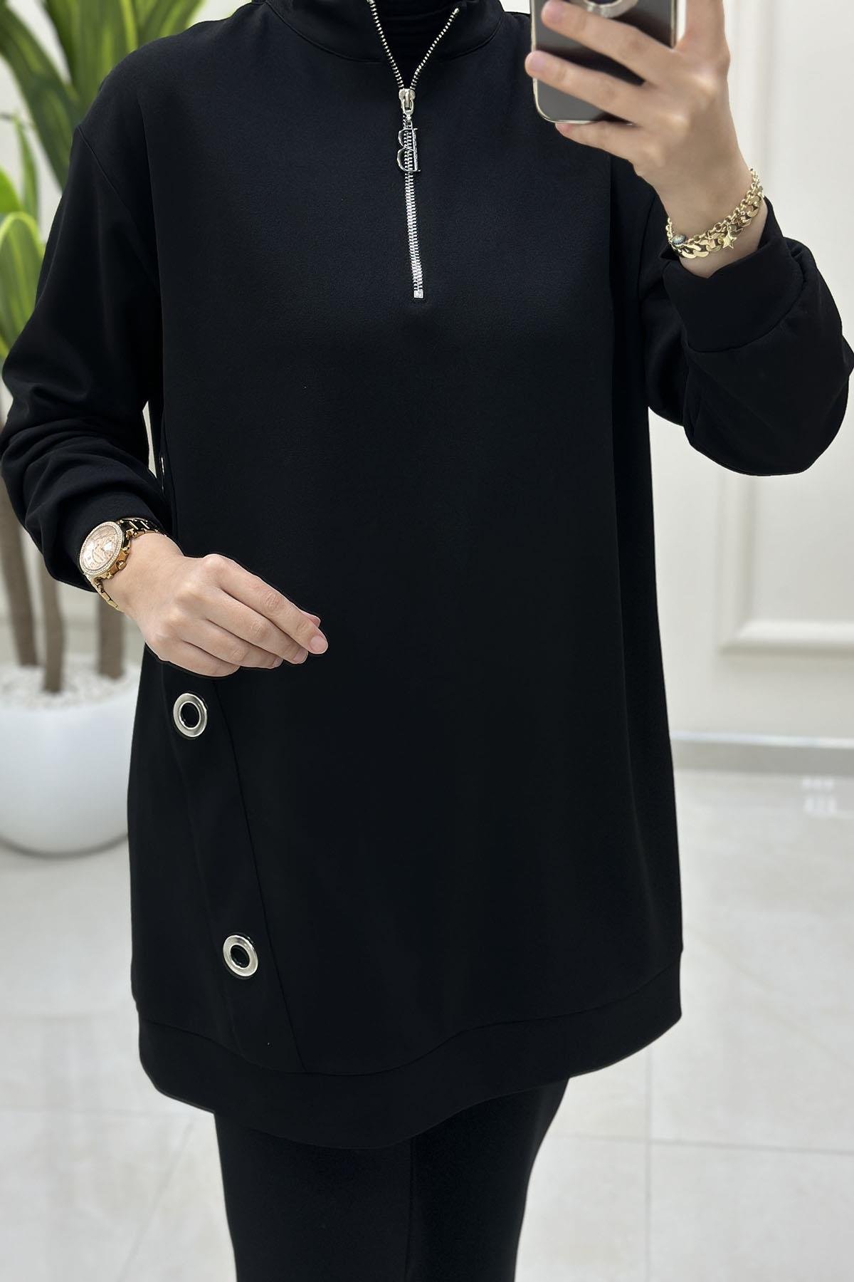 Belli Önü Yarım Fermuarlı Kuşgözü Detaylı Kadın Tunik Siyah BELLİ 4005 (BELLİ-26K4005)
