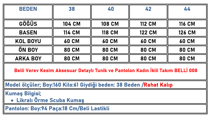 Belli Verev Kesim Aksesuar Detaylı Tunik ve Pantolon Kadın İkili Takım Siyah BELLİ 008 (BELLİ-26K008)