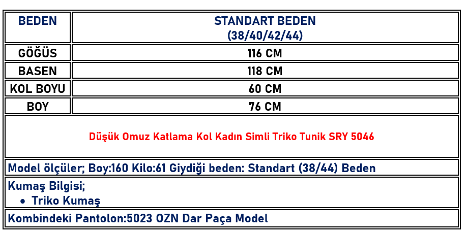 Düşük Omuz Katlama Kol Kadın Simli Triko Tunik Siyah SRY 5046 (SRY-26K5046)