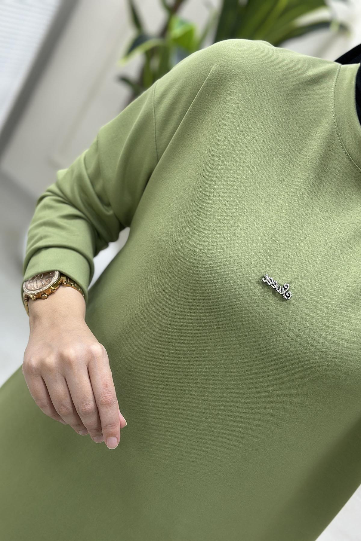 Düşük Omuz Önü Aksesuar Detaylı Uzun Kadın Tunik Fıstık Yeşili KADO 257420 (KADO-26K257420)