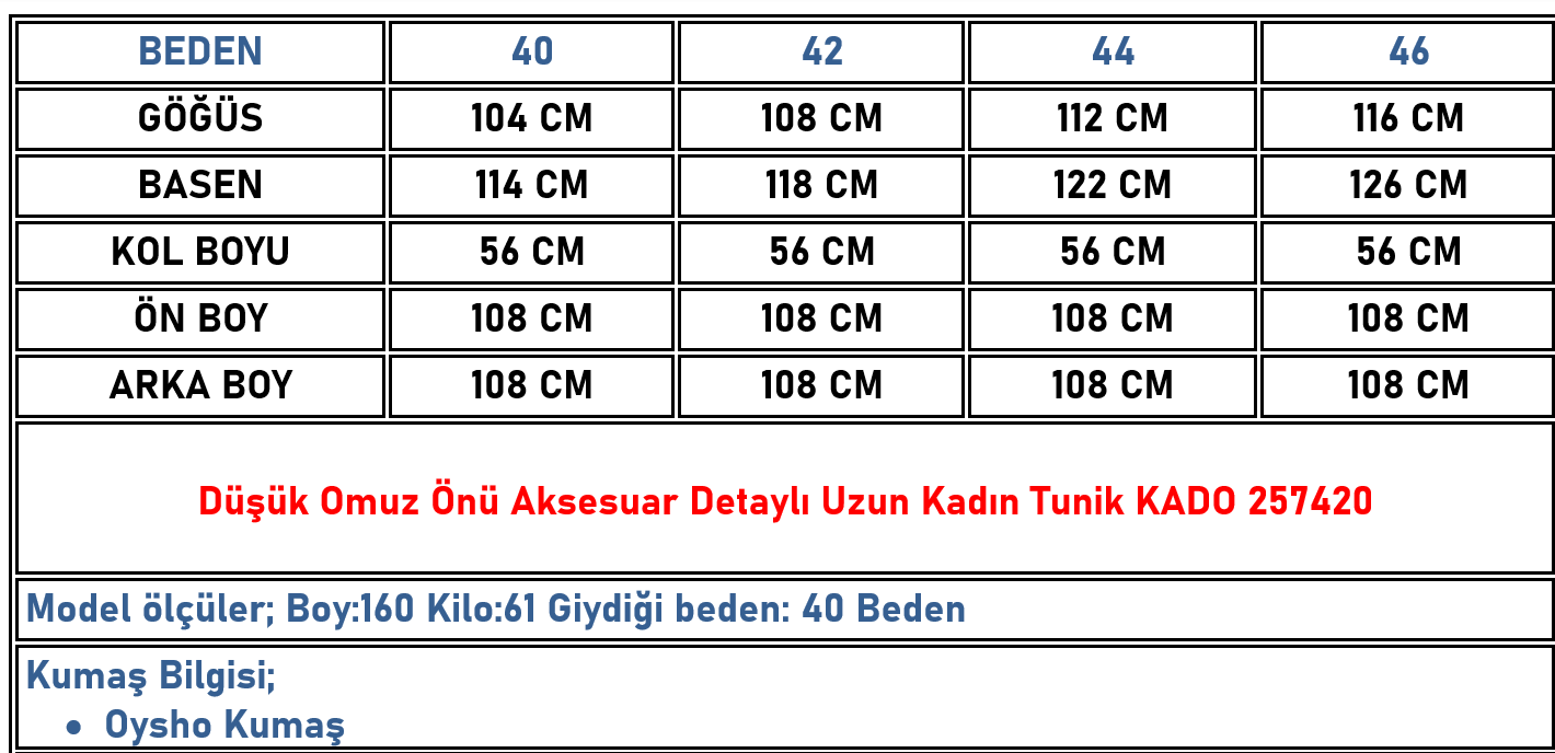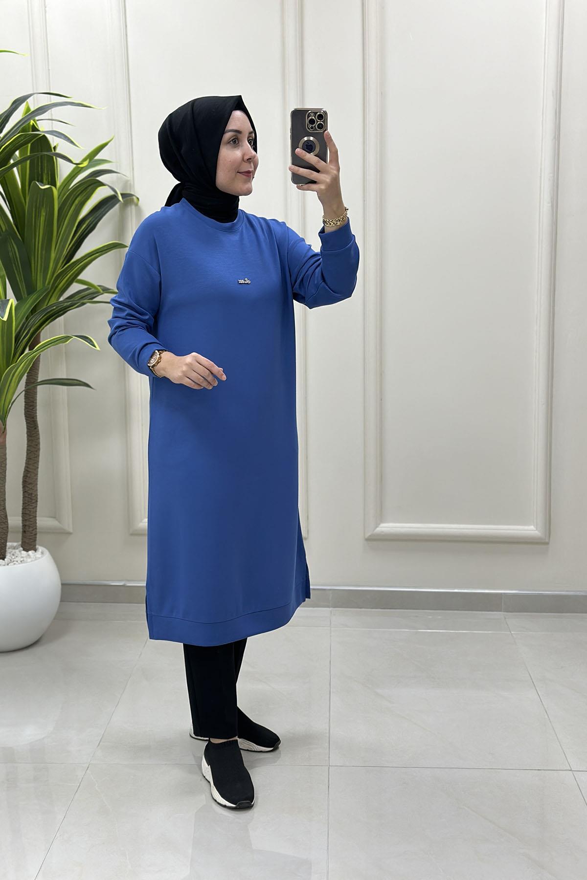 Düşük Omuz Önü Aksesuar Detaylı Uzun Kadın Tunik Mavi KADO 257420 (KADO-26K257420)
