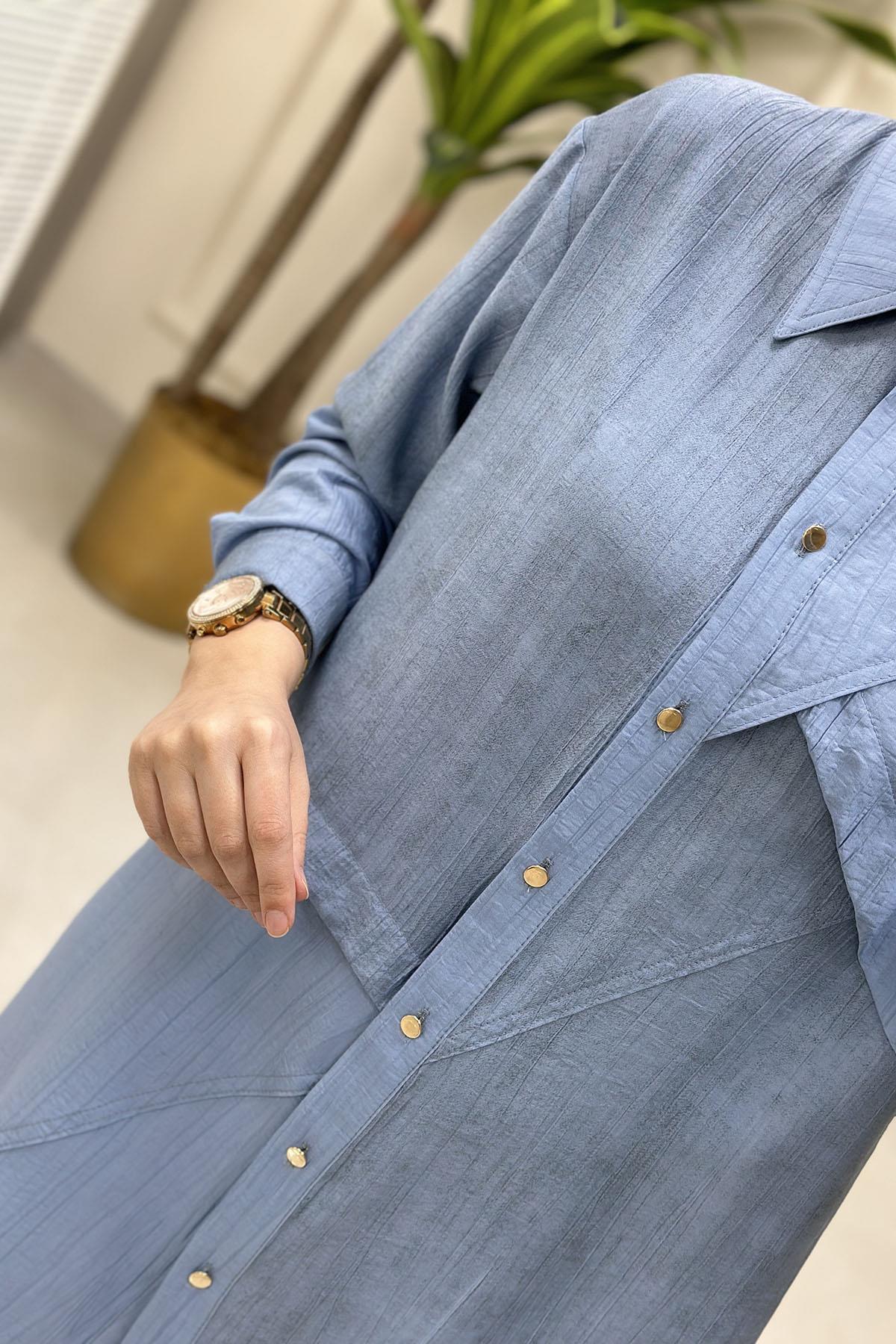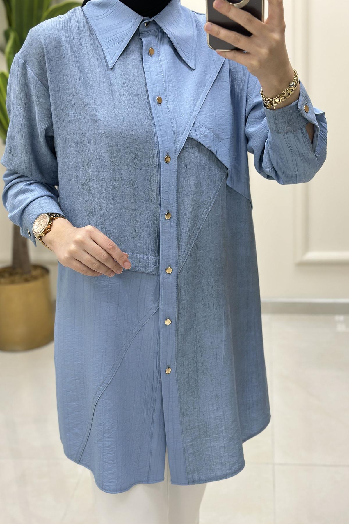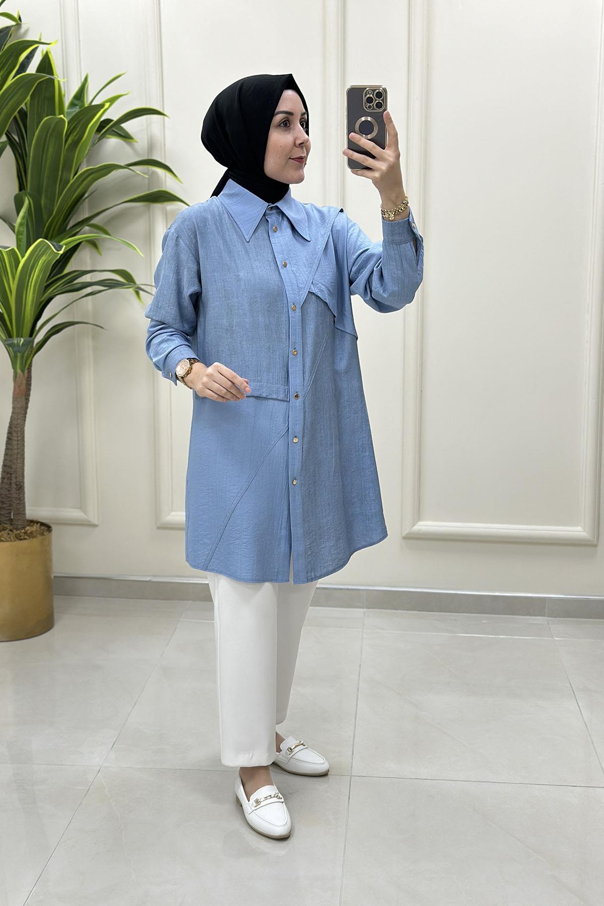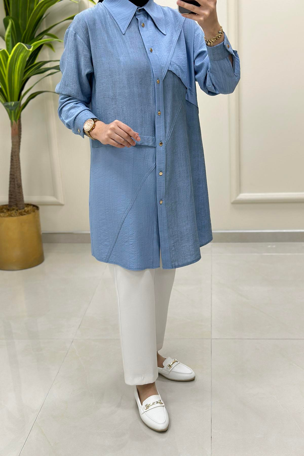 Düşük Omuz Önü Düğmeli Kadın Tunik Bebe Mavisi ALS 5118 (ALS-25Y5118)