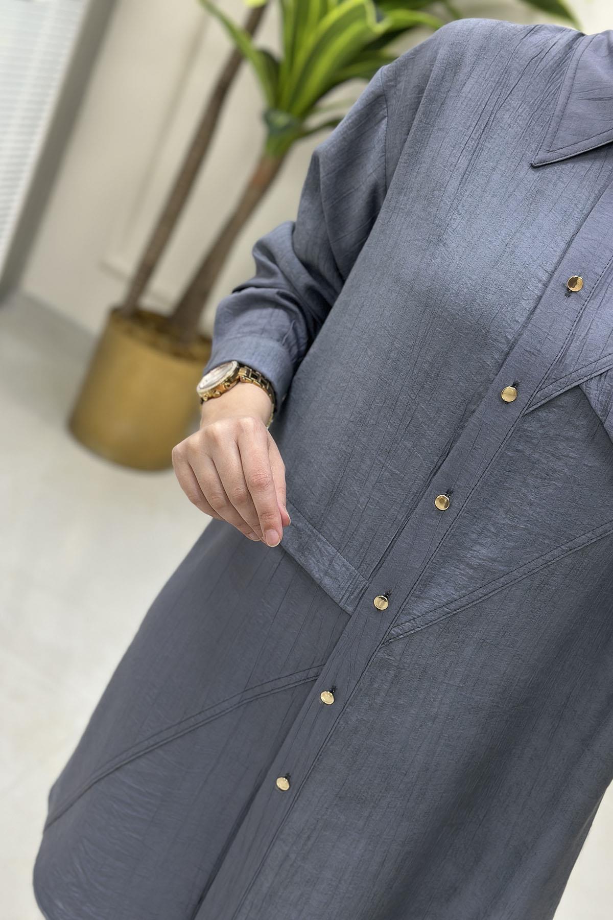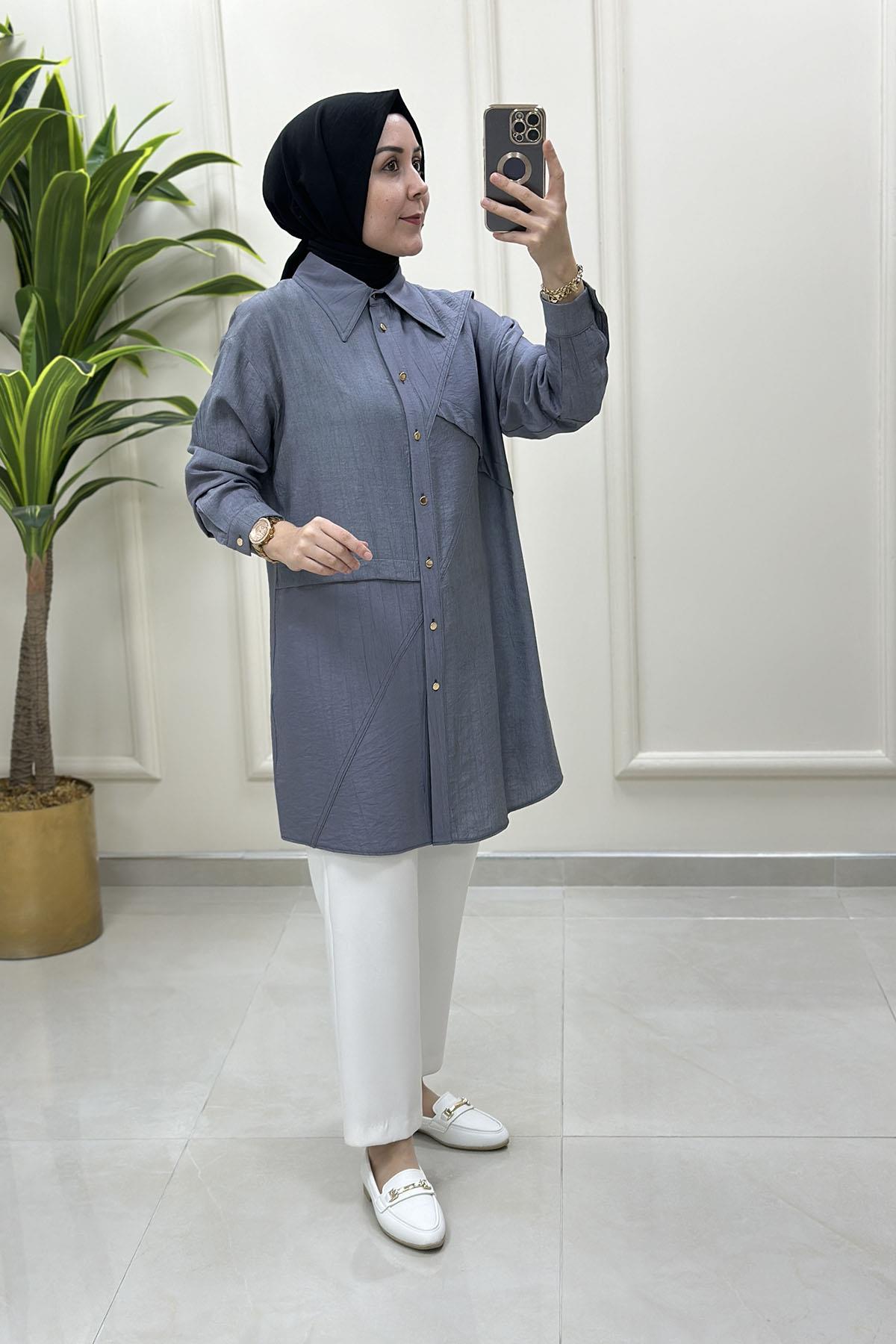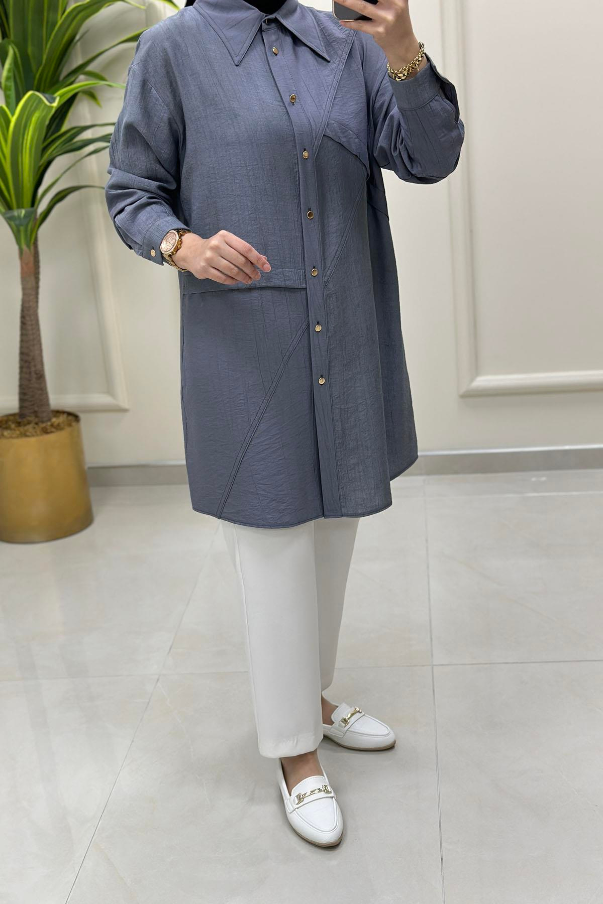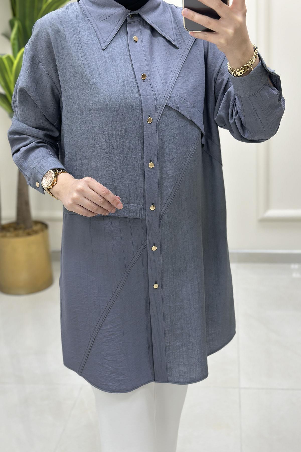Düşük Omuz Önü Düğmeli Kadın Tunik Gri ALS 5118 (ALS-25Y5118)