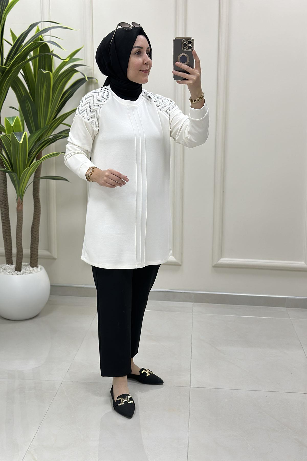 Düşük Omuz Pulpayet Detaylı Kadın Oysho Tunik Beyaz KADO 257118 (KADO-26K257118)