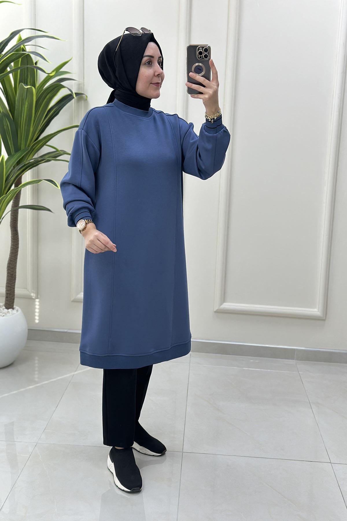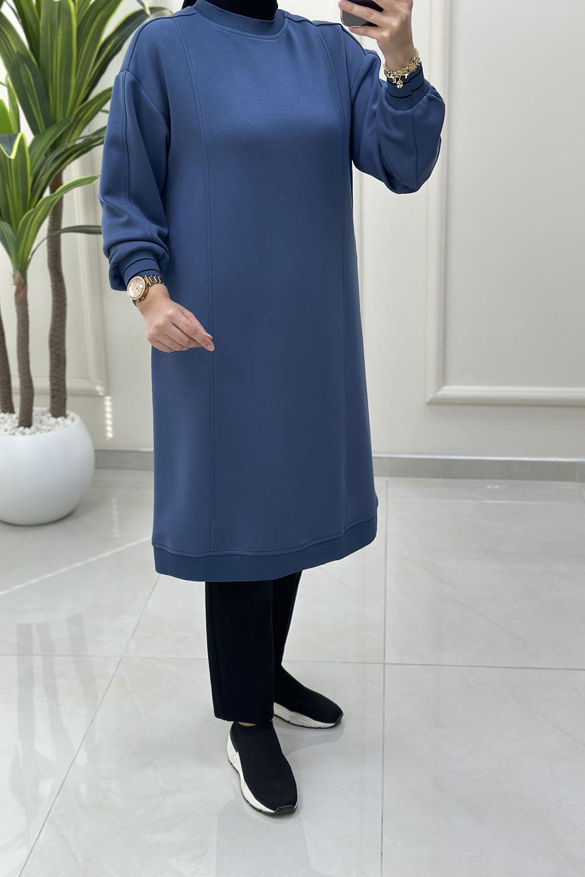 Düşük Omuz Ribanalı Oysho Kadın Tunik İndigo ALS 5216 (ALS-26K5216)
