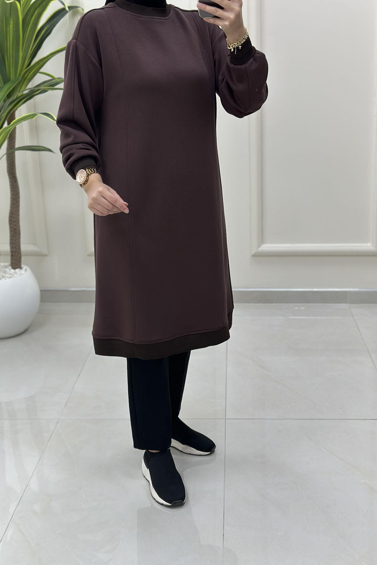 Düşük Omuz Ribanalı Oysho Kadın Tunik Kahverengi ALS 5216 (ALS-26K5216)