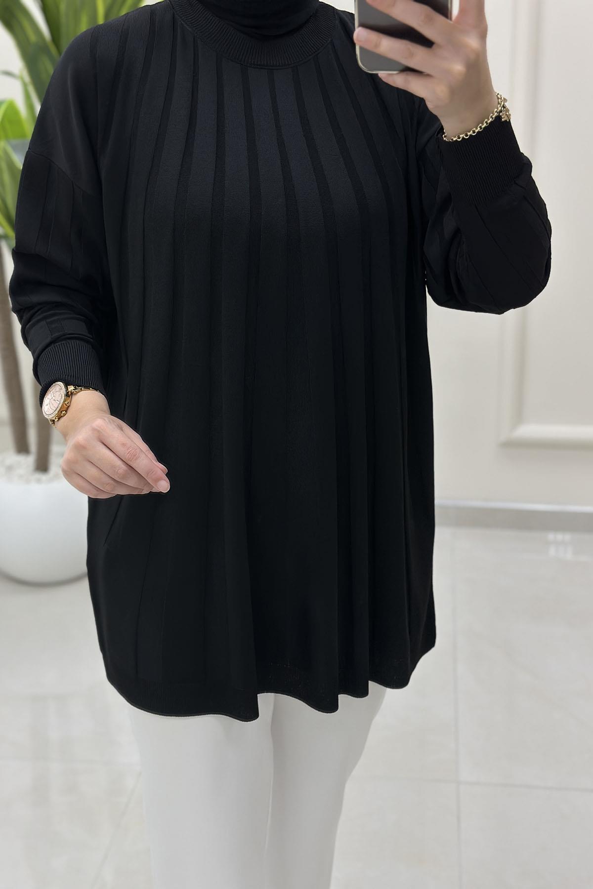 Düşük Omuz Şerit Desen Kadın Triko Tunik Siyah KADO 2725509 (KADO-26K2725509)