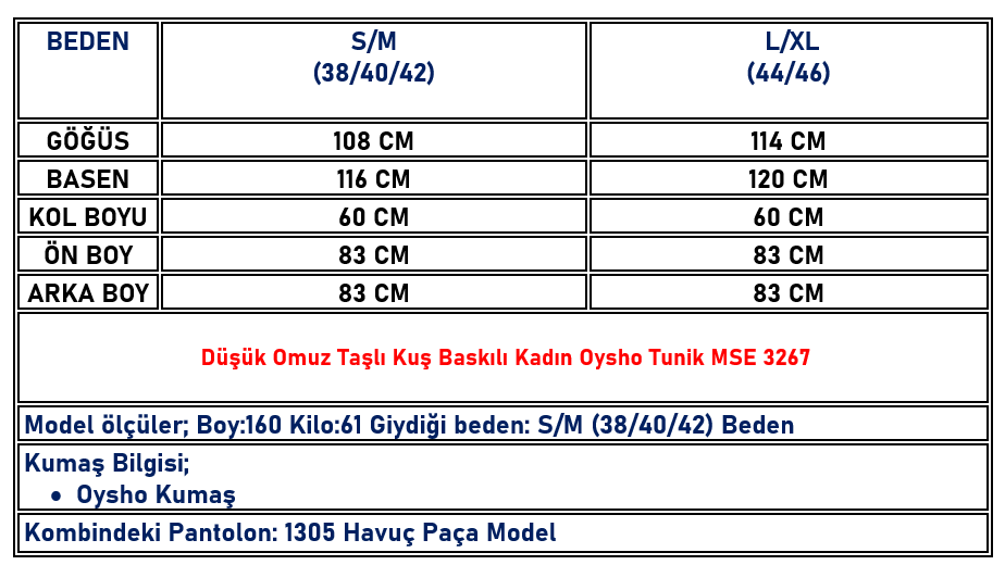 Düşük Omuz Taşlı Kuş Baskılı Kadın Oysho Tunik İndigo MSE 3267 (MSE-26K3267)