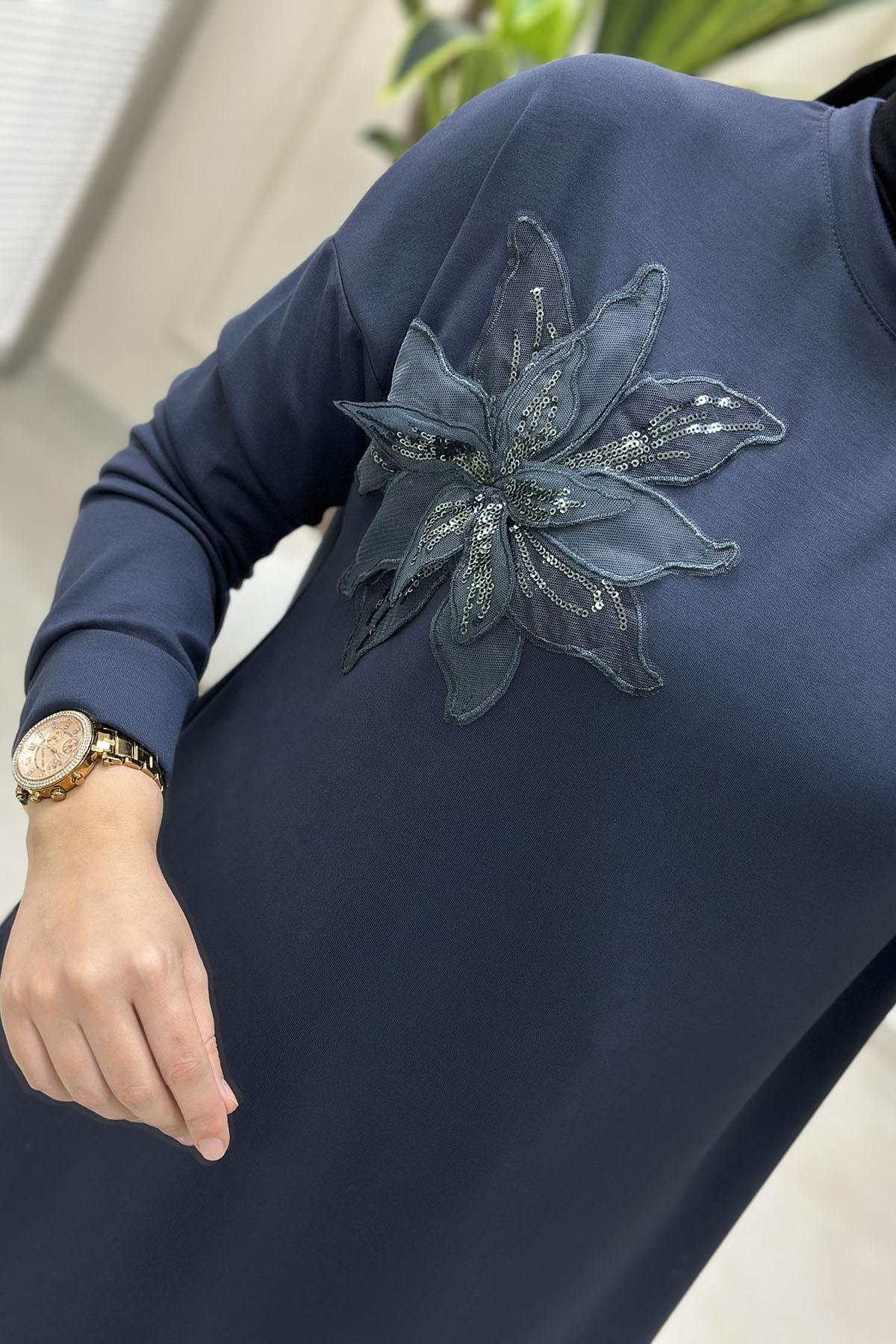 Düşük Omuz Tül Çiçek Aksesuarlı Kadın Tunik Antrasit KADO 257346 (KADO-26K257346)