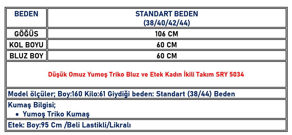 Düşük Omuz Yumoş Triko Bluz ve Etek Kadın İkili Takım Açık Gri SRY 5034 (SRY-26K5034)