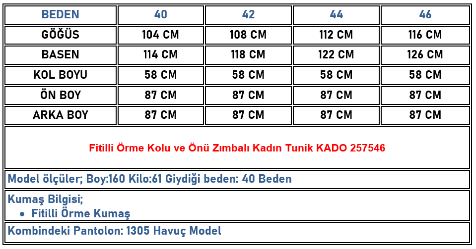 Fitilli Örme Kolu ve Önü Zımbalı Kadın Tunik İndigo KADO 257546 (KADO-26K257546)