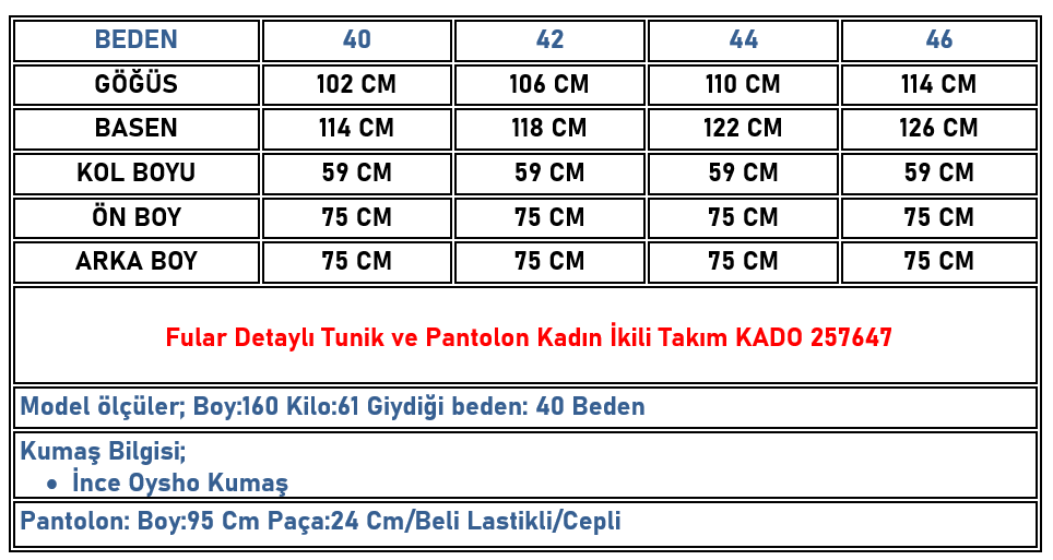 Fular Detaylı Tunik ve Pantolon Kadın İkili Takım Siyah KADO 257647 (KADO-26K257647)