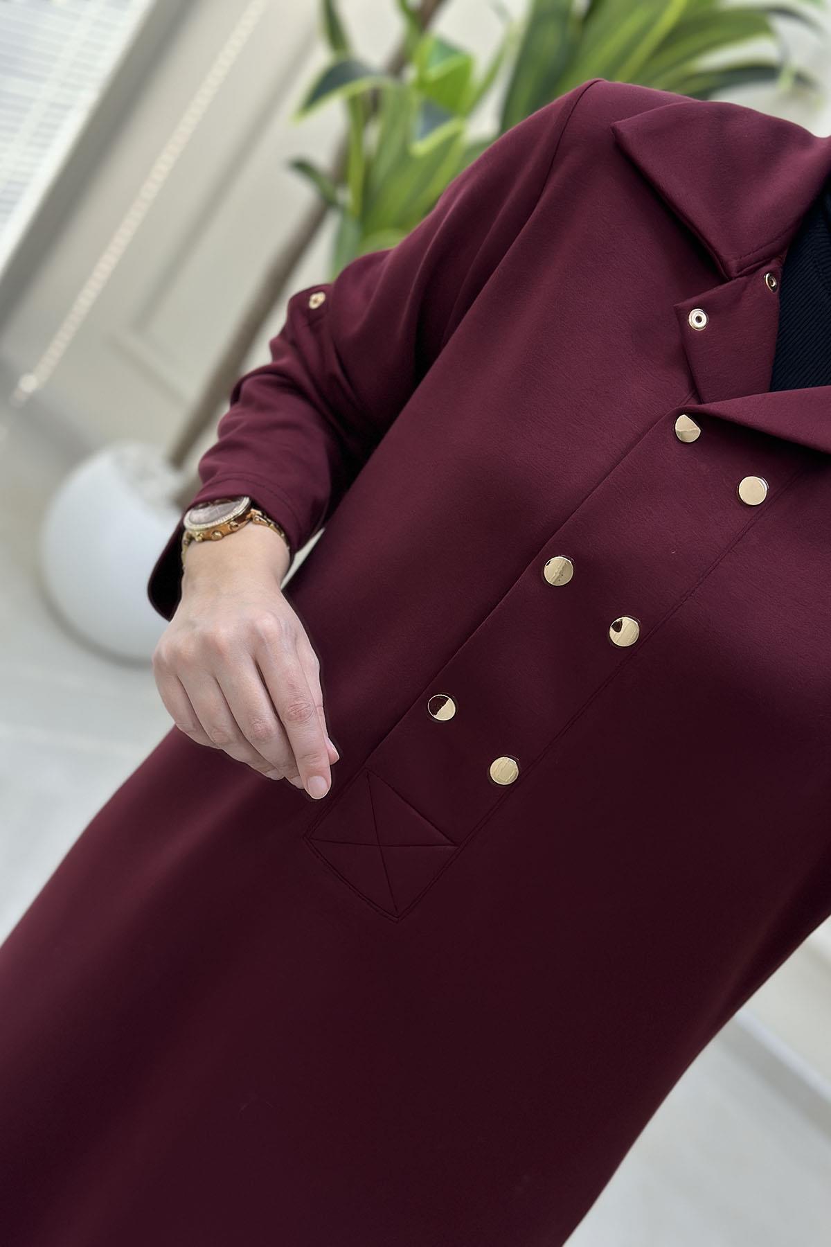 Katlama Kol Önü Çıtçıtlı Kadın Oysho Elbise Bordo VOL 1612 (VOL-26K1612)