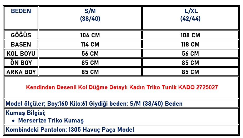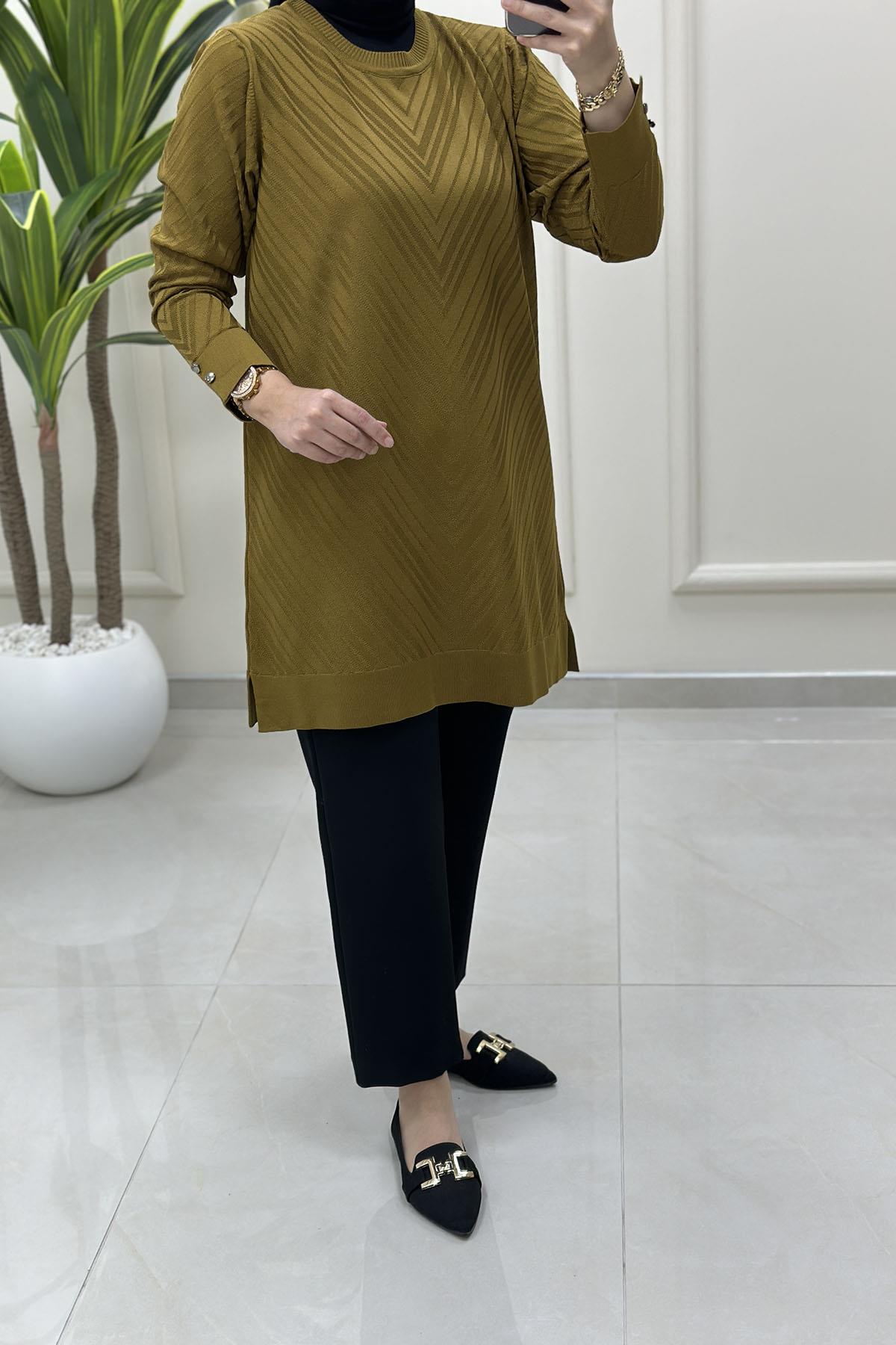 Kendinden Desenli Kol Düğme Detaylı Kadın Triko Tunik Yağ Yeşili KADO 2725027 (KADO-26K2725027)