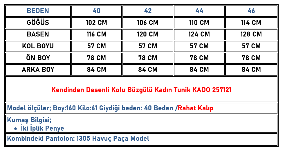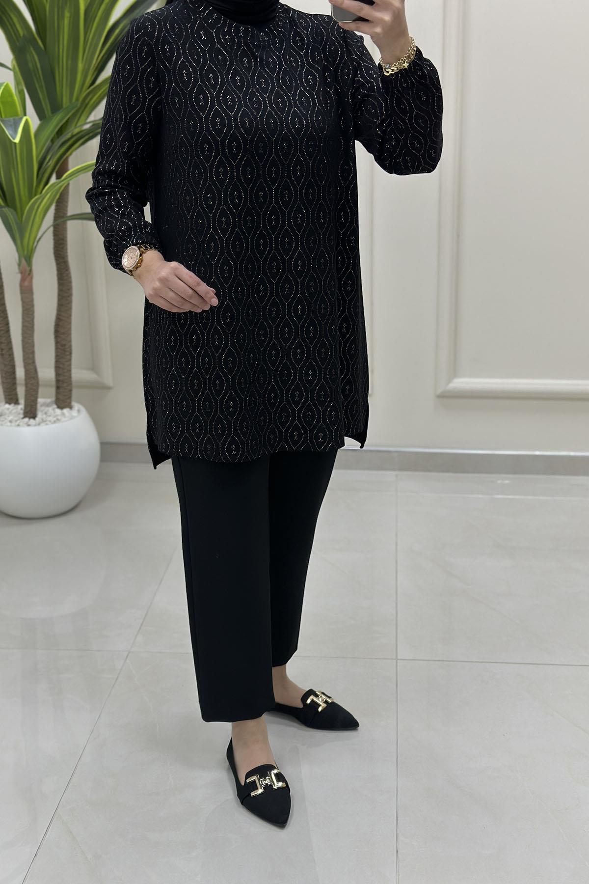 Kendinden Desenli Kolu Büzgülü Kadın Tunik Siyah KADO 257121 (KADO-26K257121)