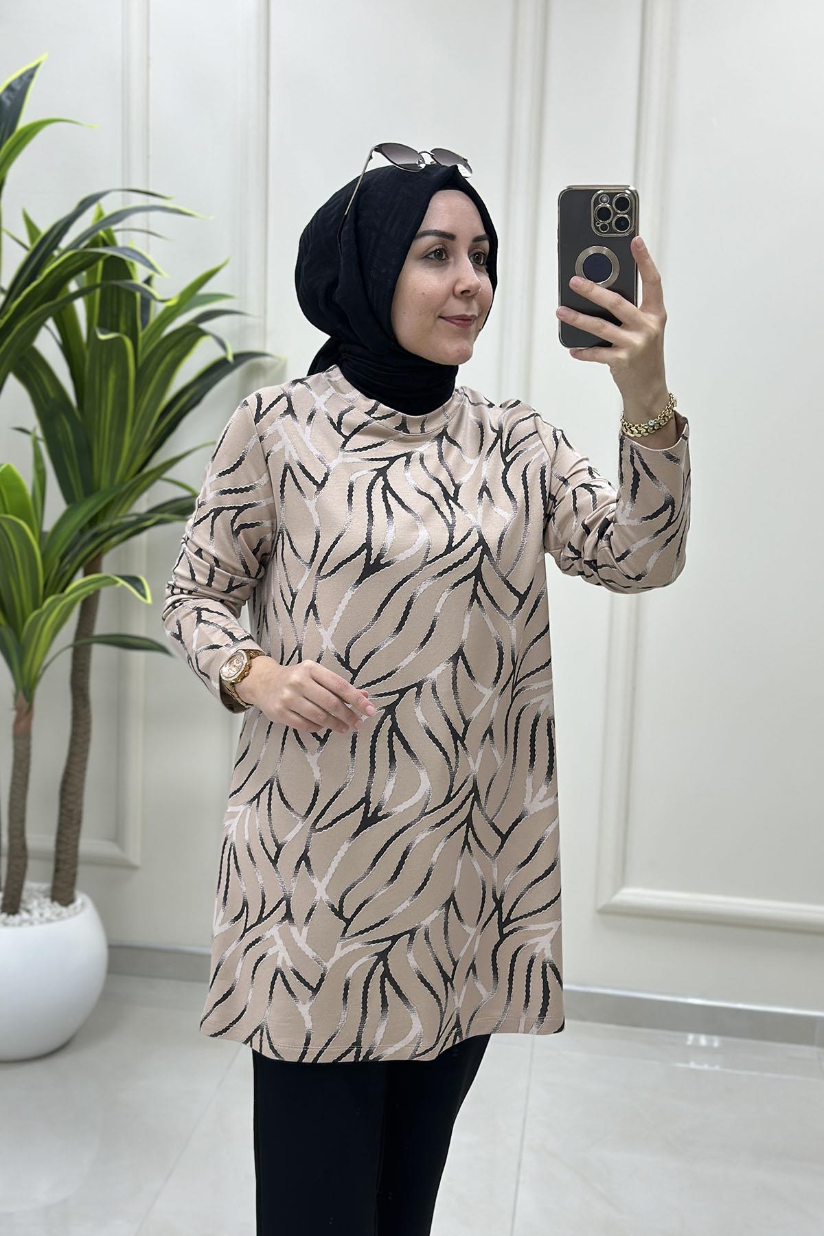 Kendinden Desenli Likralı Kadın Tunik Bej KADO 257601 (KADO-26K257601)