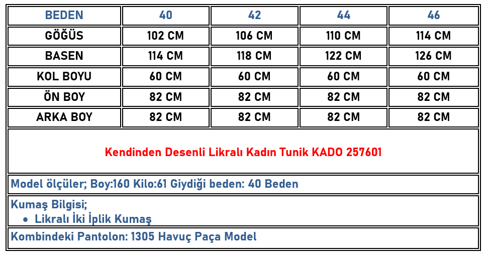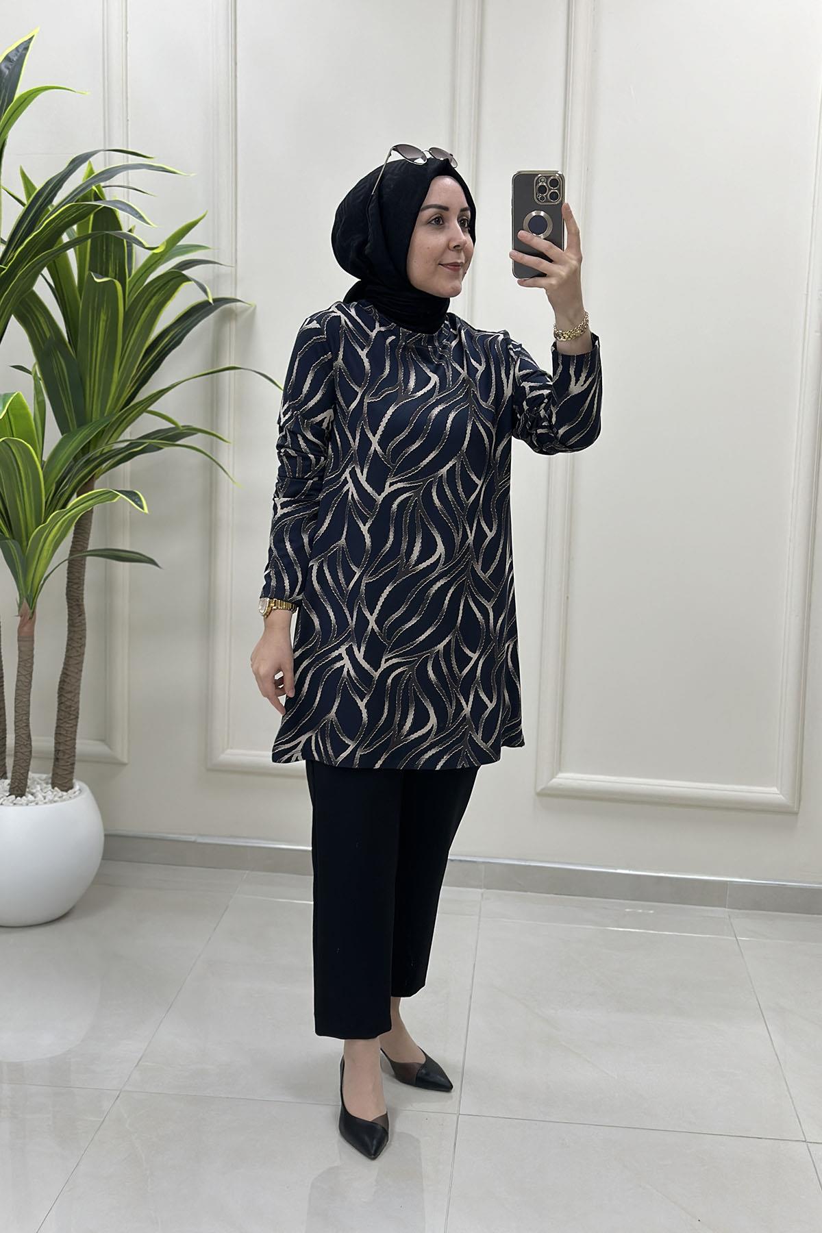 Kendinden Desenli Likralı Kadın Tunik Lacivert KADO 257601 (KADO-26K257601)