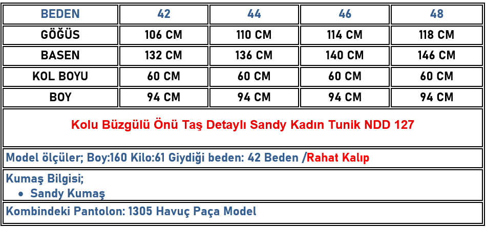 Kolu Büzgülü Önü Taş Detaylı Sandy Kadın Tunik Siyah NDD 127