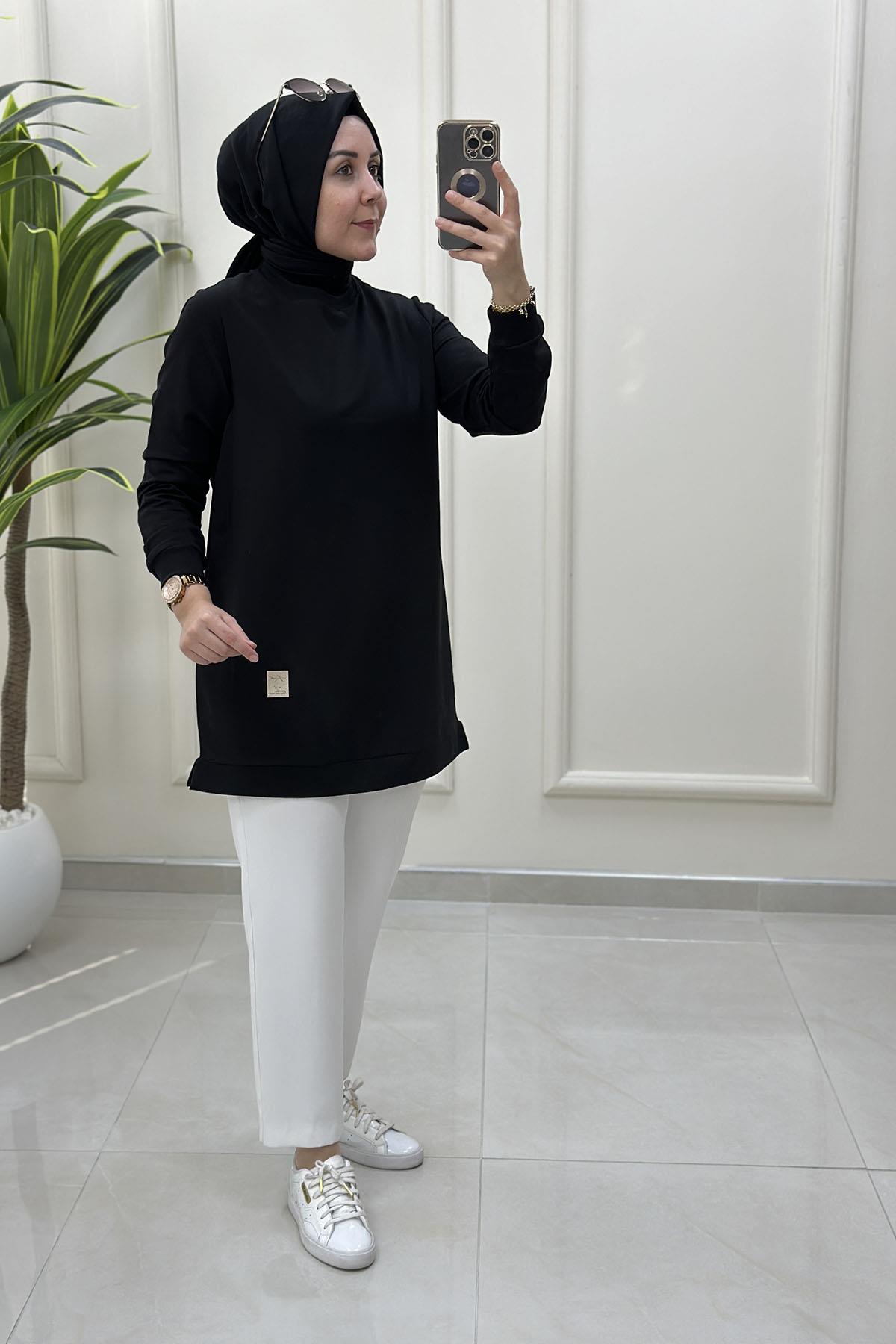 Kolu Ribanalı Armalı Spor Kadın Tunik Siyah KADO 7191 (KADO-26K7191)