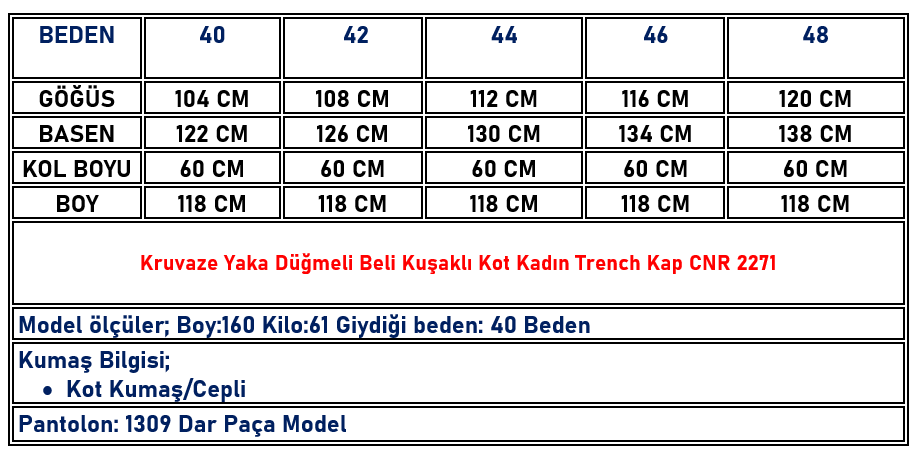 Kruvaze Yaka Düğmeli Beli Kuşaklı Kot Kadın Trench Kap Koyu Mavi CNR 2271
