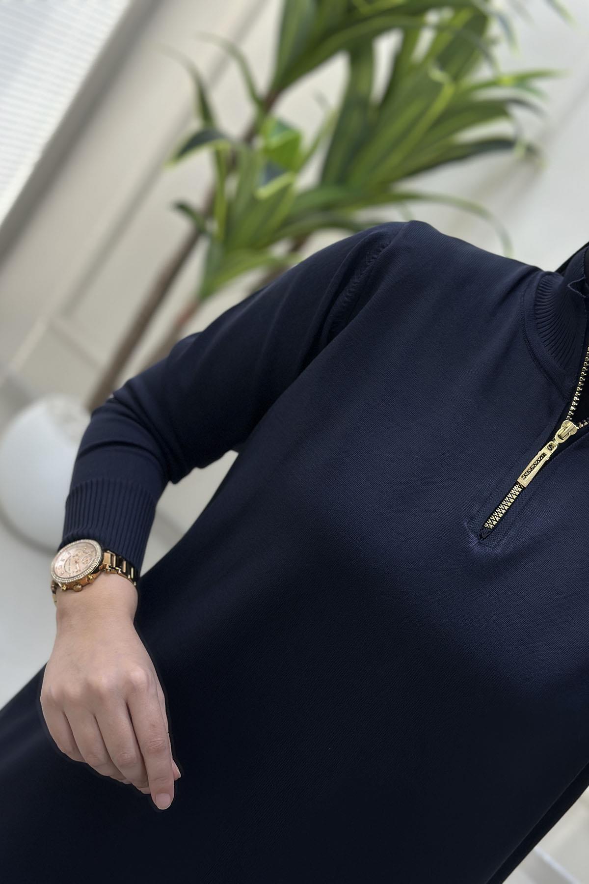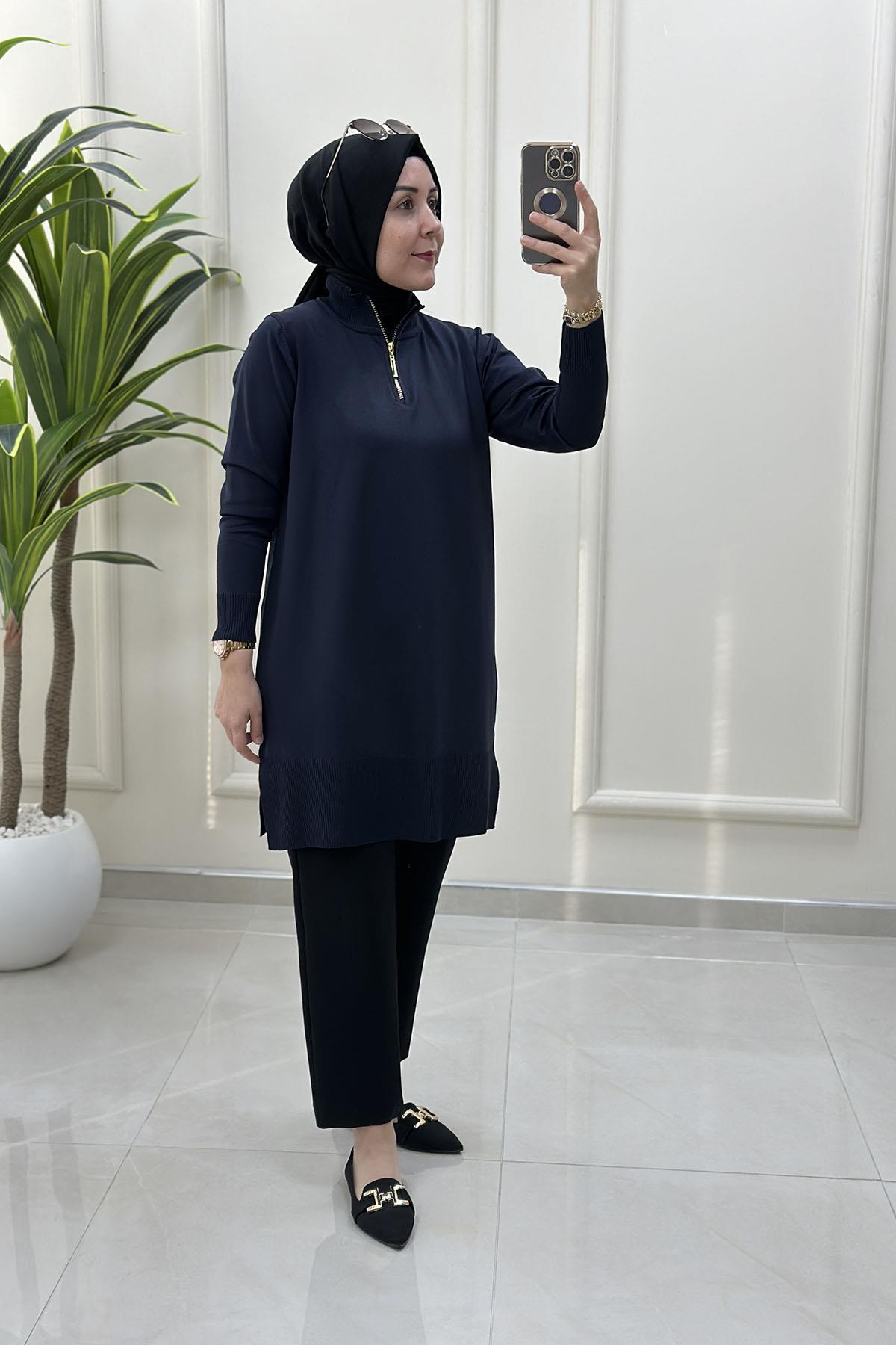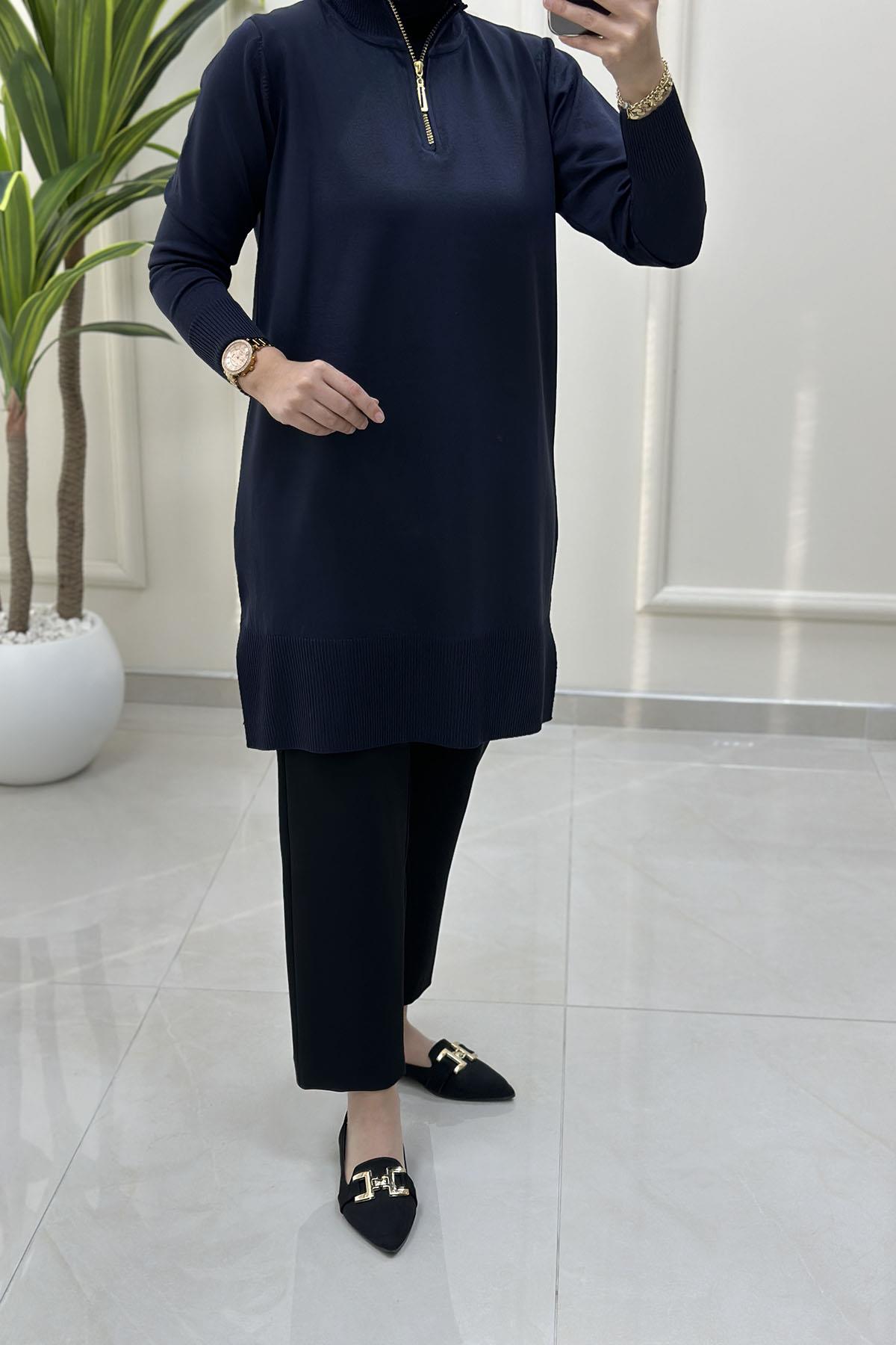 Merserize Yaka Yarım Fermuarlı Kadın Triko Tunik Lacivert KADO 2725015 (KADO-26K2725015)