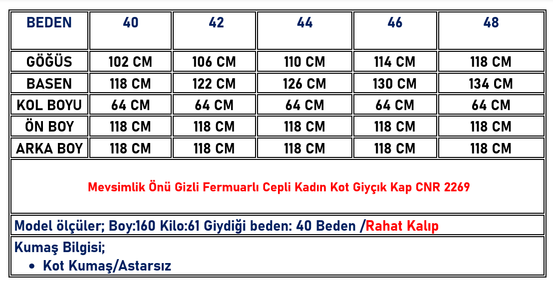 Mevsimlik Önü Gizli Fermuarlı Cepli Kadın Kot Giyçık Kap Koyu Mavi CNR 2269 (CNR-26K2269)