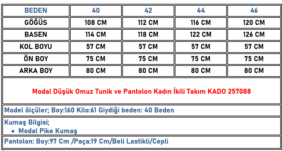 Modal Düşük Omuz Tunik ve Pantolon Kadın İkili Takım Koyu İndigo KADO 257088 (KADO-26K257088)
