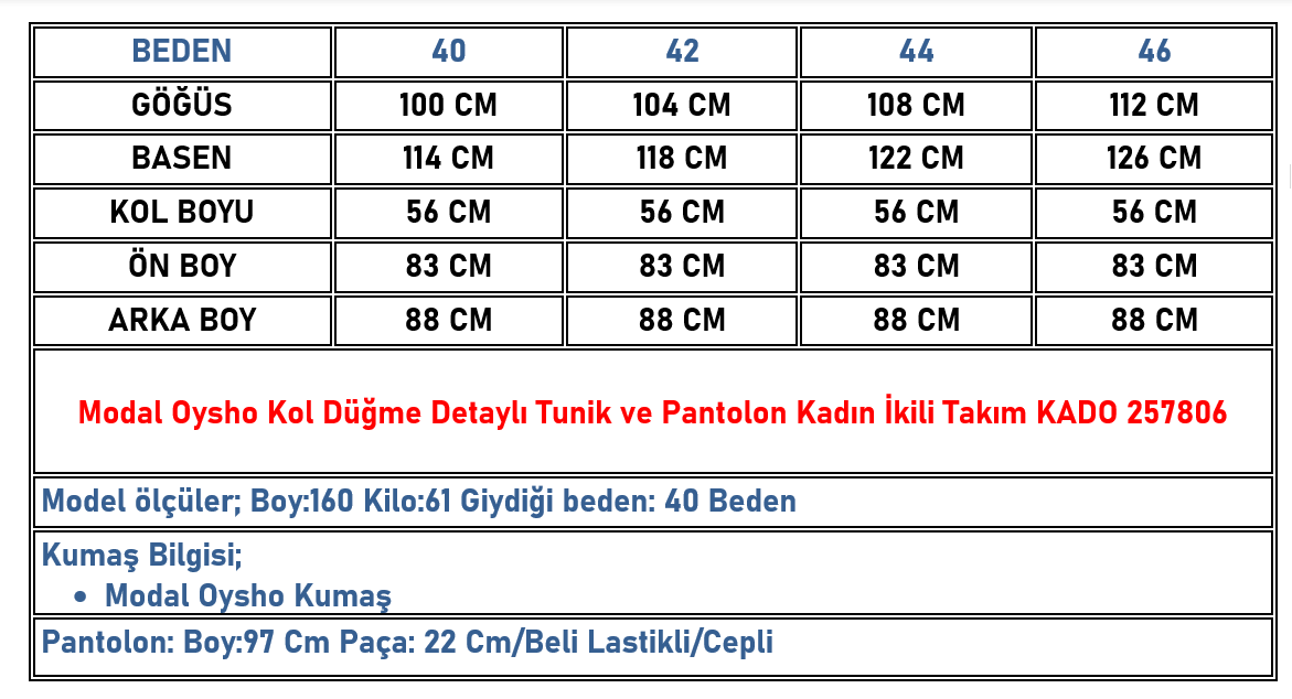 Modal Oysho Kol Düğme Detaylı Tunik ve Pantolon Kadın İkili Takım Yağ Yeşili KADO 257806 (KADO-26K257806)