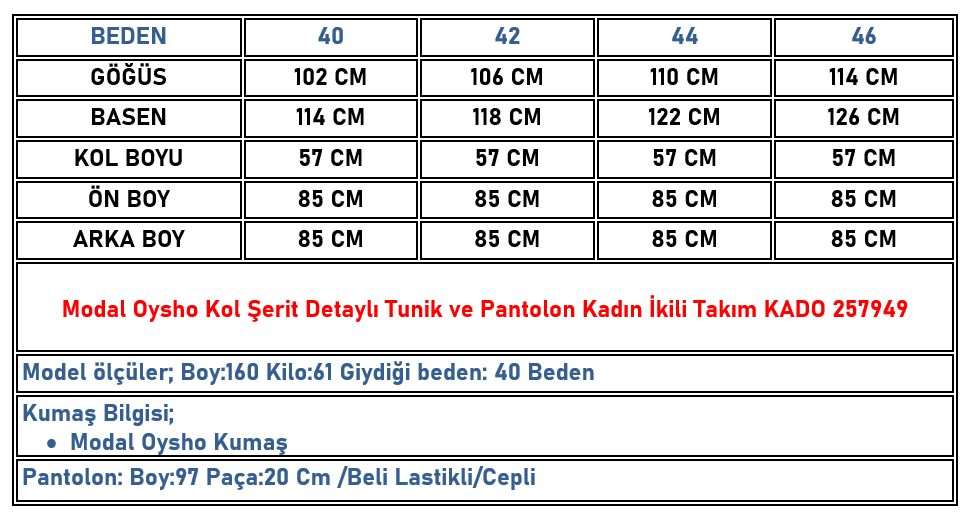 Modal Oysho Kol Şerit Detaylı Tunik ve Pantolon Kadın İkili Takım Bordo KADO 257949 (KADO-26K257949)