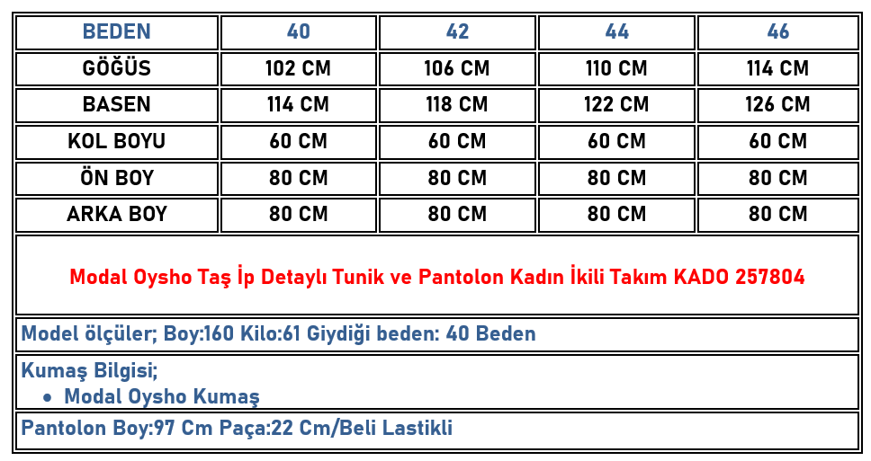 Modal Oysho Taş İp Detaylı Tunik ve Pantolon Kadın İkili Takım Vizon KADO 257804 (KADO-26K257804)