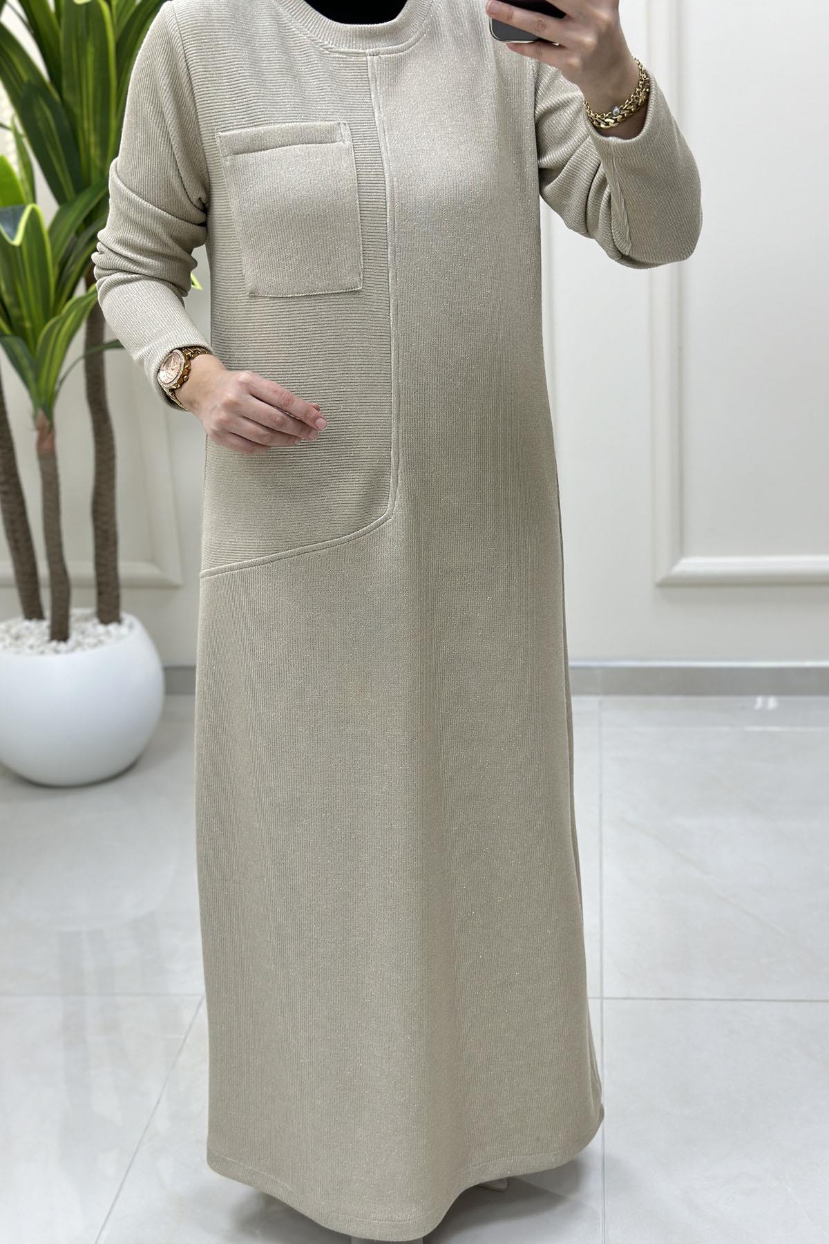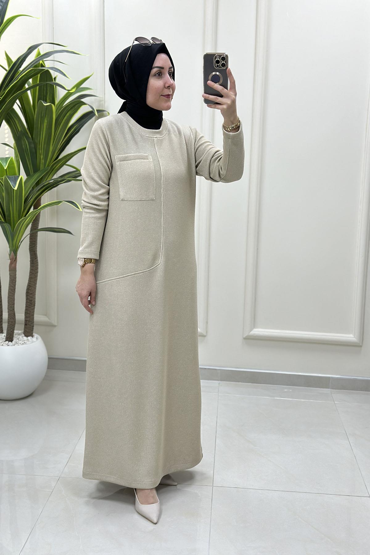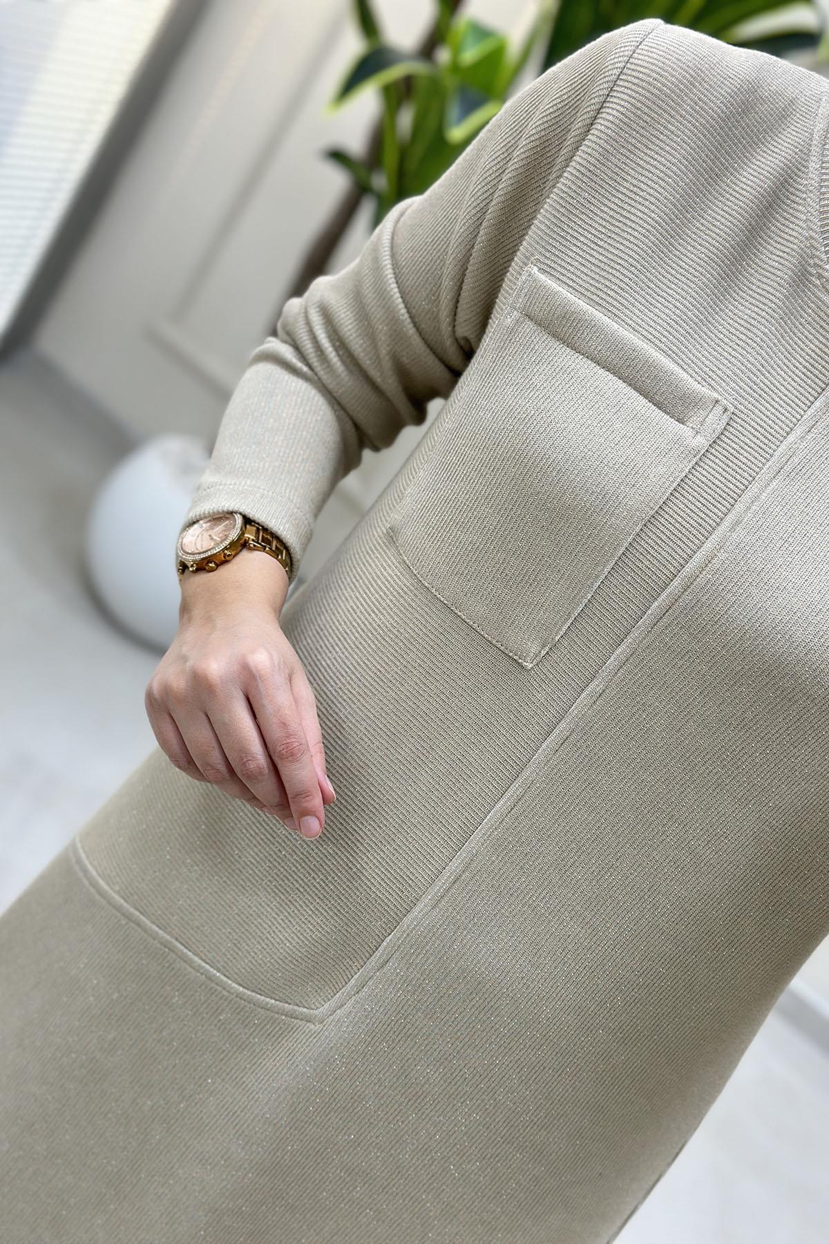 Önü Cep Detaylı Örme Kadın Elbise Bej ALS 5221 (ALS-26K5221)