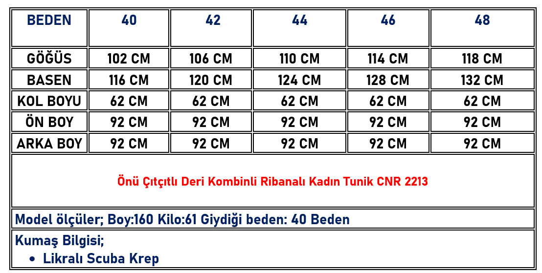 Önü Çıtçıtlı Deri Kombinli Ribanalı Kadın Tunik Siyah CNR 2213