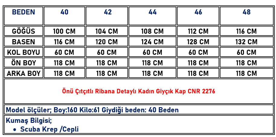 Önü Çıtçıtlı Ribana Detaylı Kadın Giyçık Kap Lacivert CNR 2276