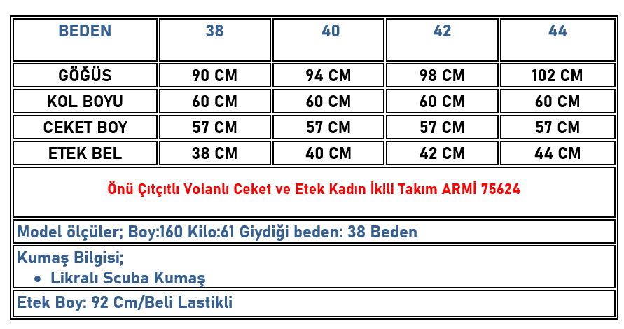 Önü Çıtçıtlı Volanlı Ceket ve Etek Kadın İkili Takım Lacivert ARMİ 75624 (ARMİ-26K75624)