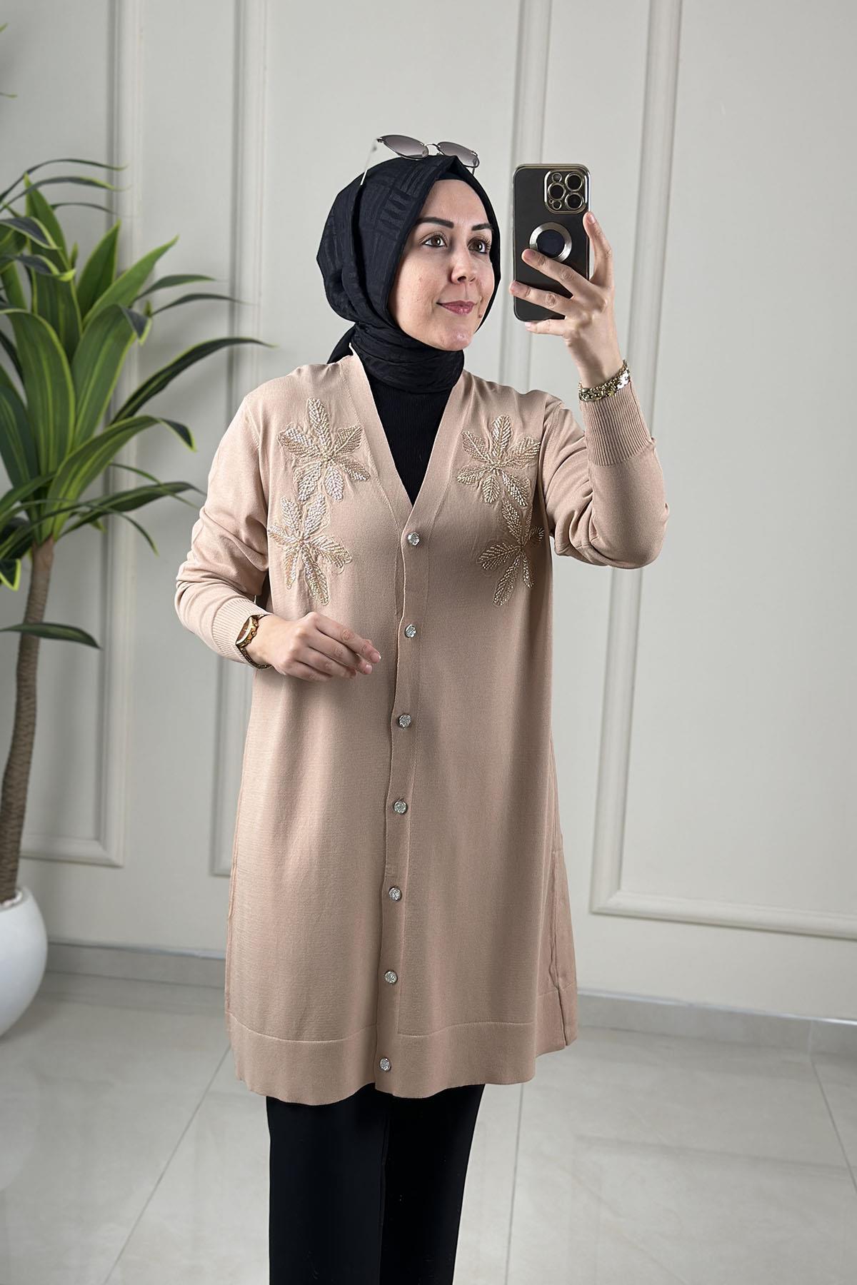 Önü Düğmeli Çiçek Nakışlı Merserize Kadın Hırka Somon SFF 145110 (SFF-26K145110)